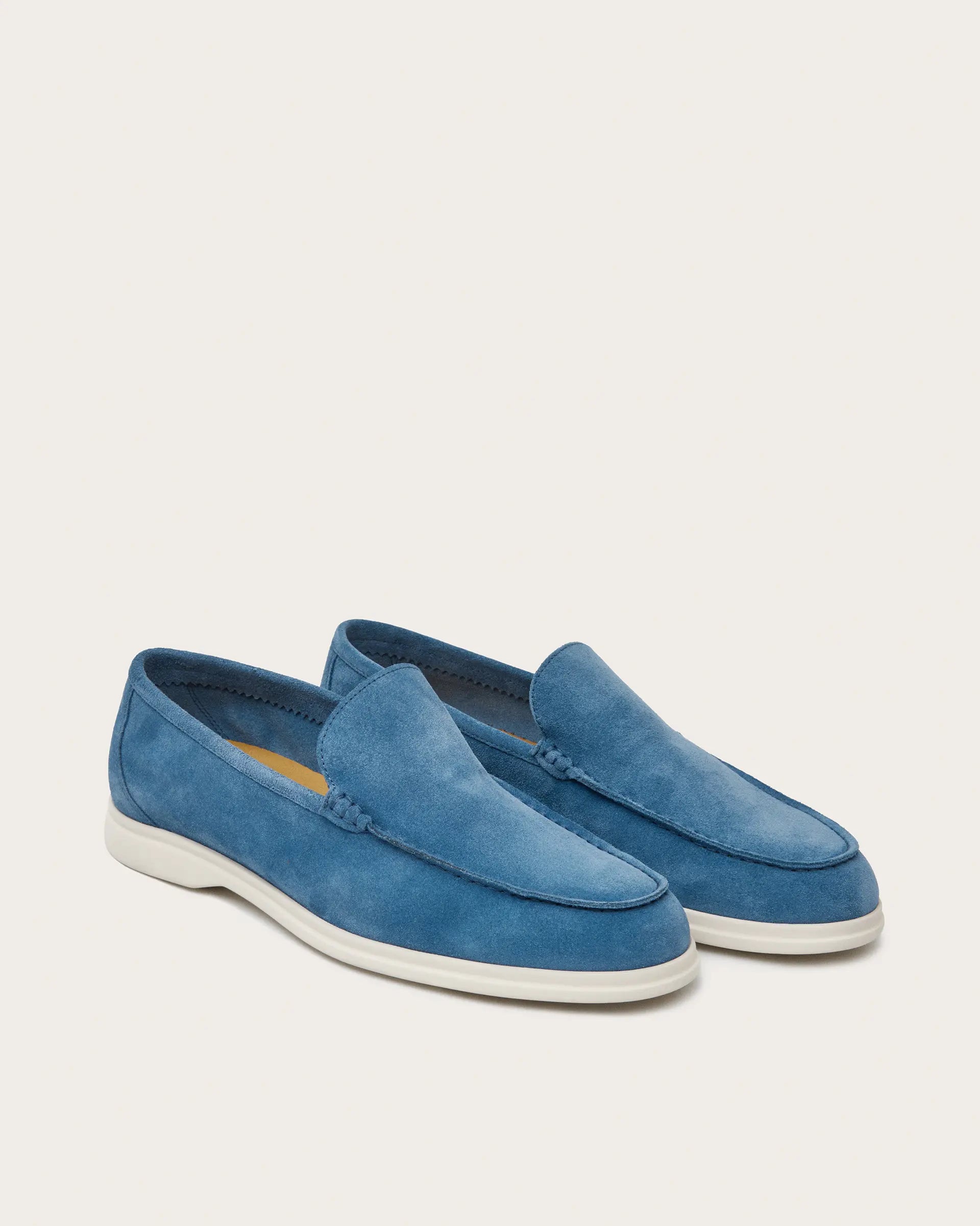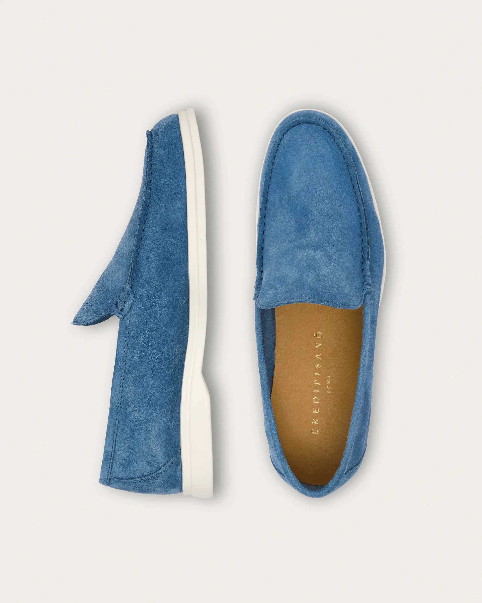 Unlined sports shoe, an icon of leisure footwear. Made of very soft suede, it is characterised by a minimal and essential shape enhanced by handcrafted workmanship that creates contrast with the characteristic light rubber box sole.