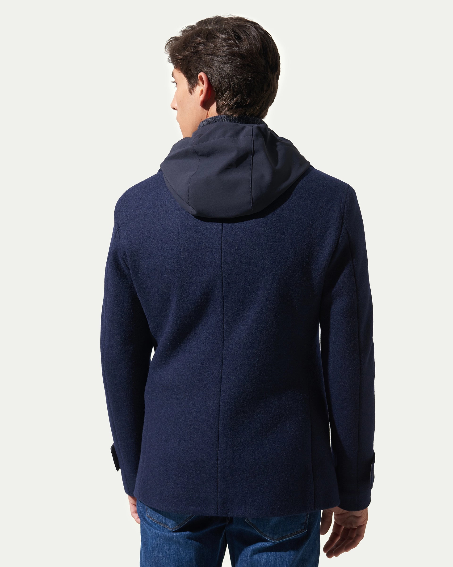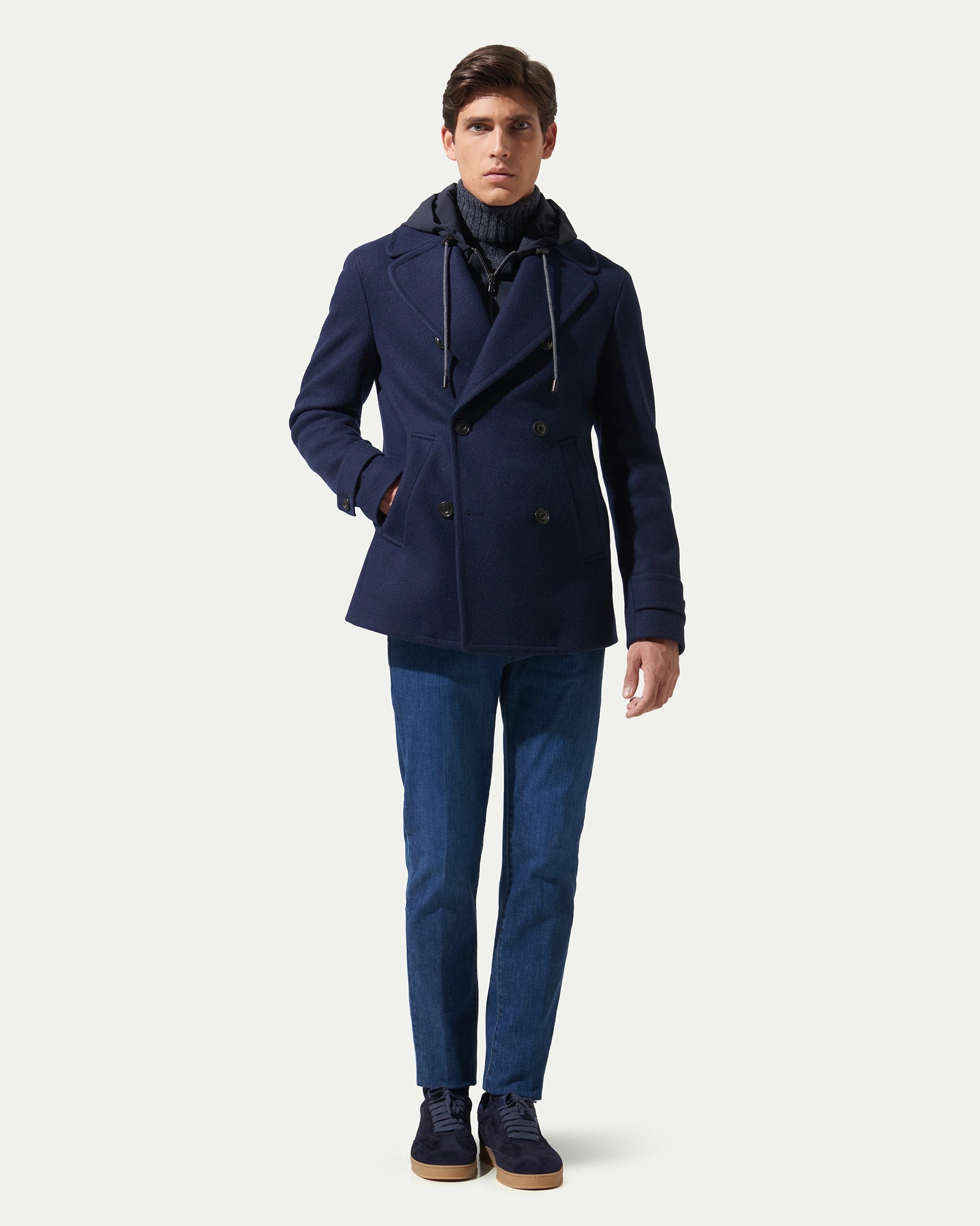 Blue Double-breasted with removable padding Wool stretch jacket – Eredipisanò International