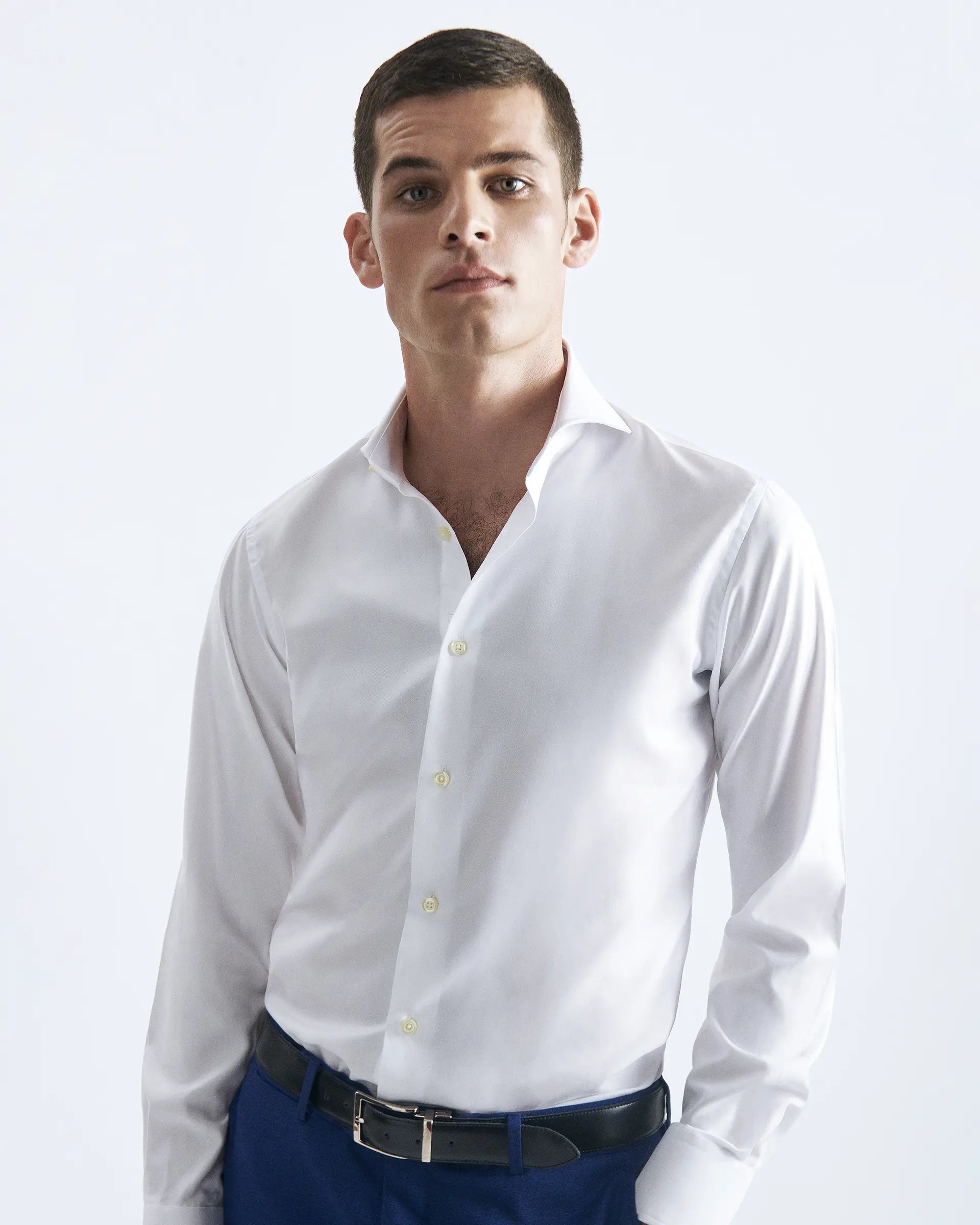 Slim Fit White in cotton and lyocell shirt with cutaway collar