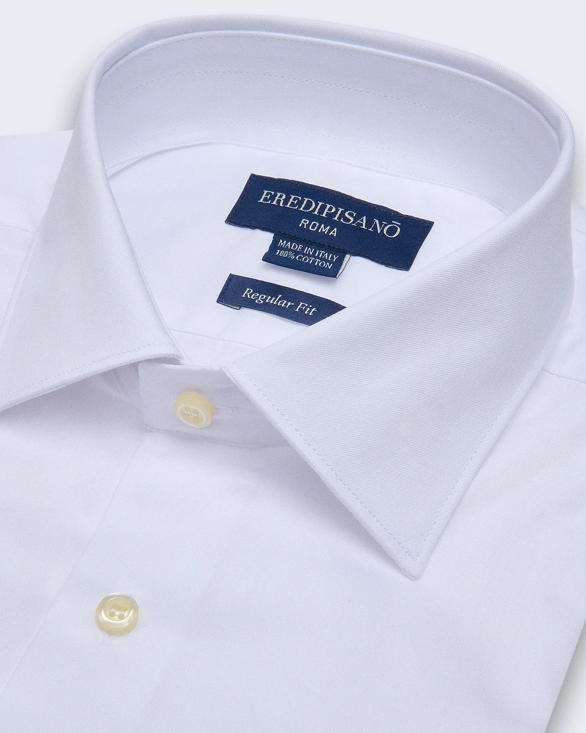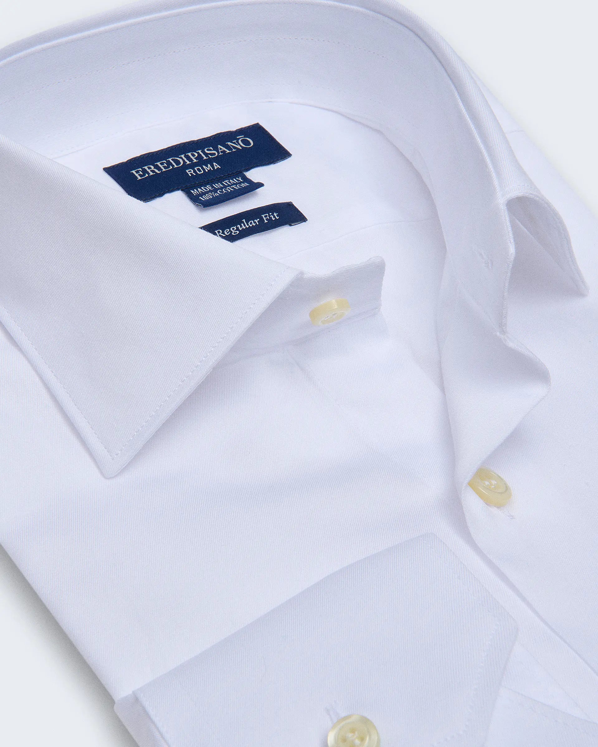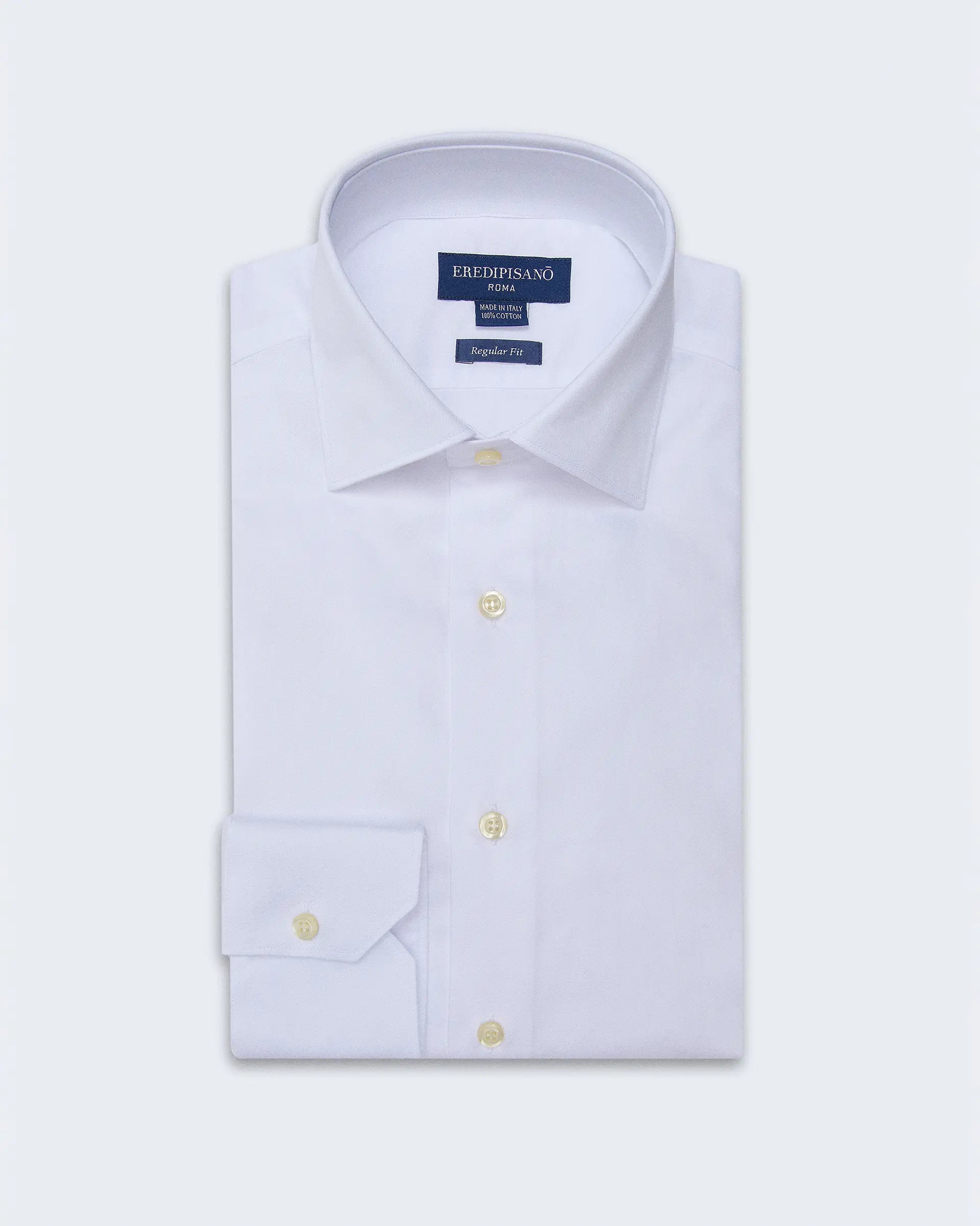 Shirt with plain bottom made of pure cotton with the fine double twisted thread workmanship. The characteristic texture enhances the tailored cut, creating a starting point for all your daily outfits. Characterized by clean and comfortable lines of the regular fit, it is dedicated to the contemporary businessman who combines comfort and elegance.