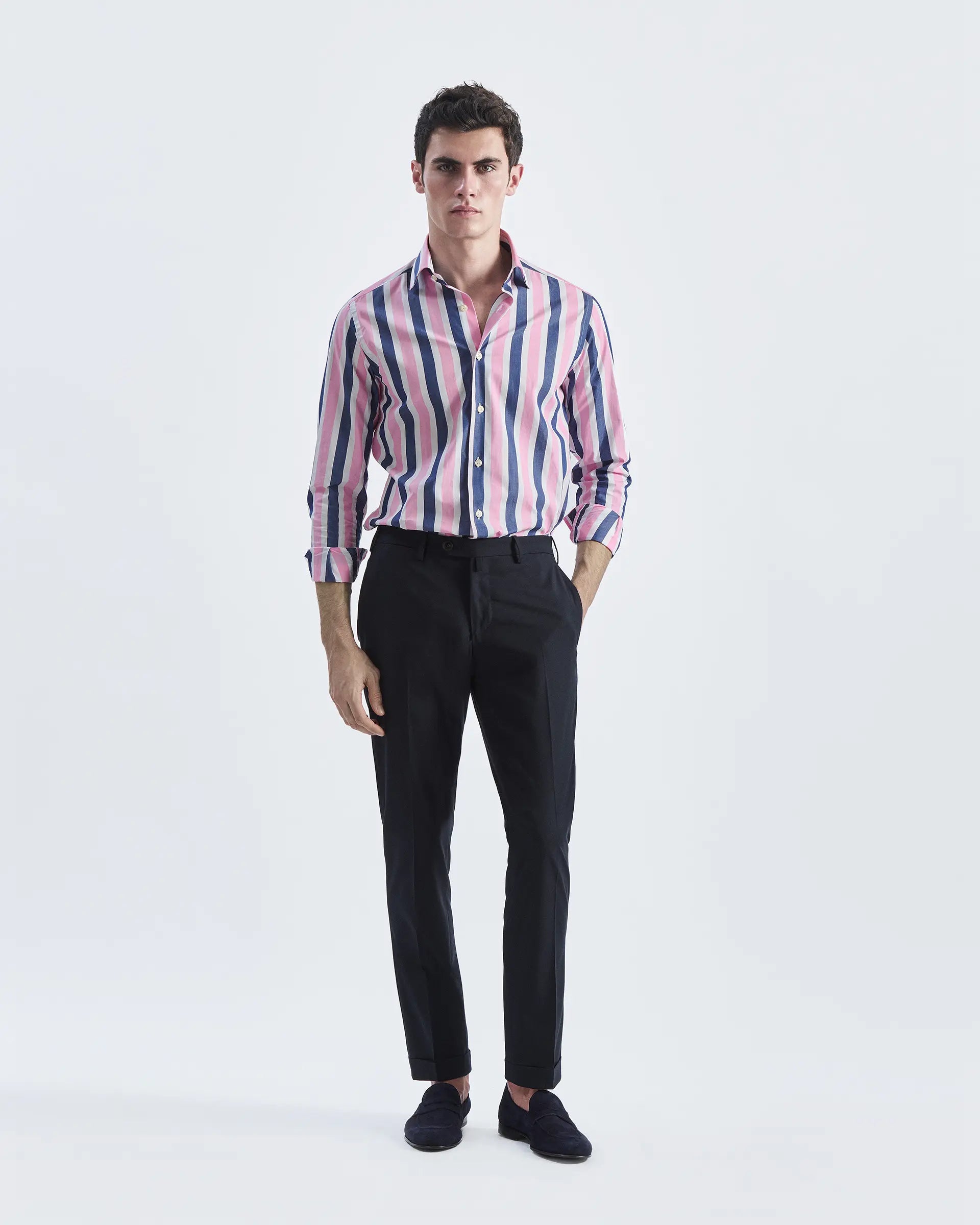 Elegant trousers, a timeless must-have of the men's wardrobe. The tailoring cut is presented in a soft blend of wool and viscose, giving rise to classic trousers, with clean lines and a perfect fit on the leg. A guarantee of style for all occasions.