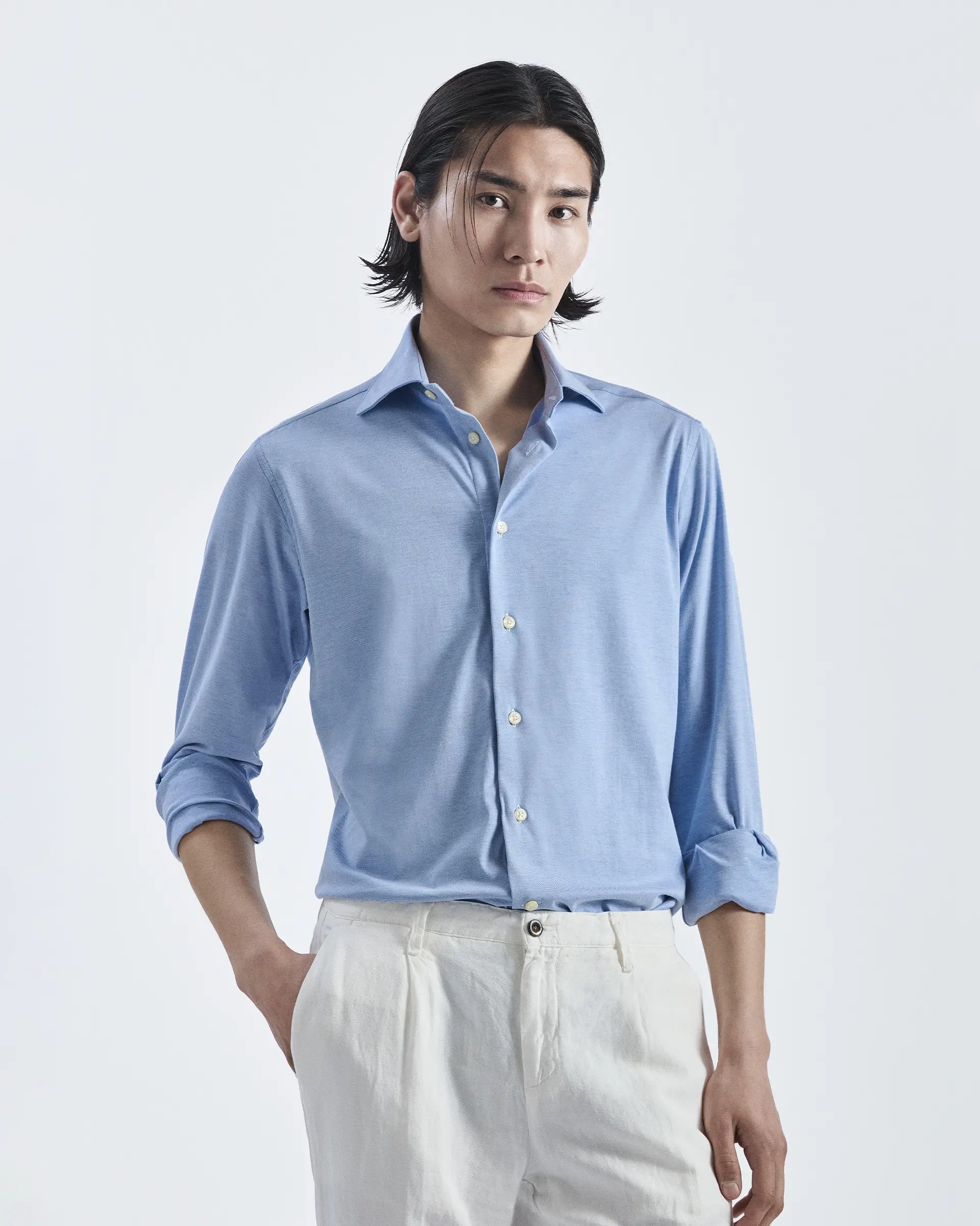 Sky Blue Cotton Comfort Fit with Cutaway Collar Shirt