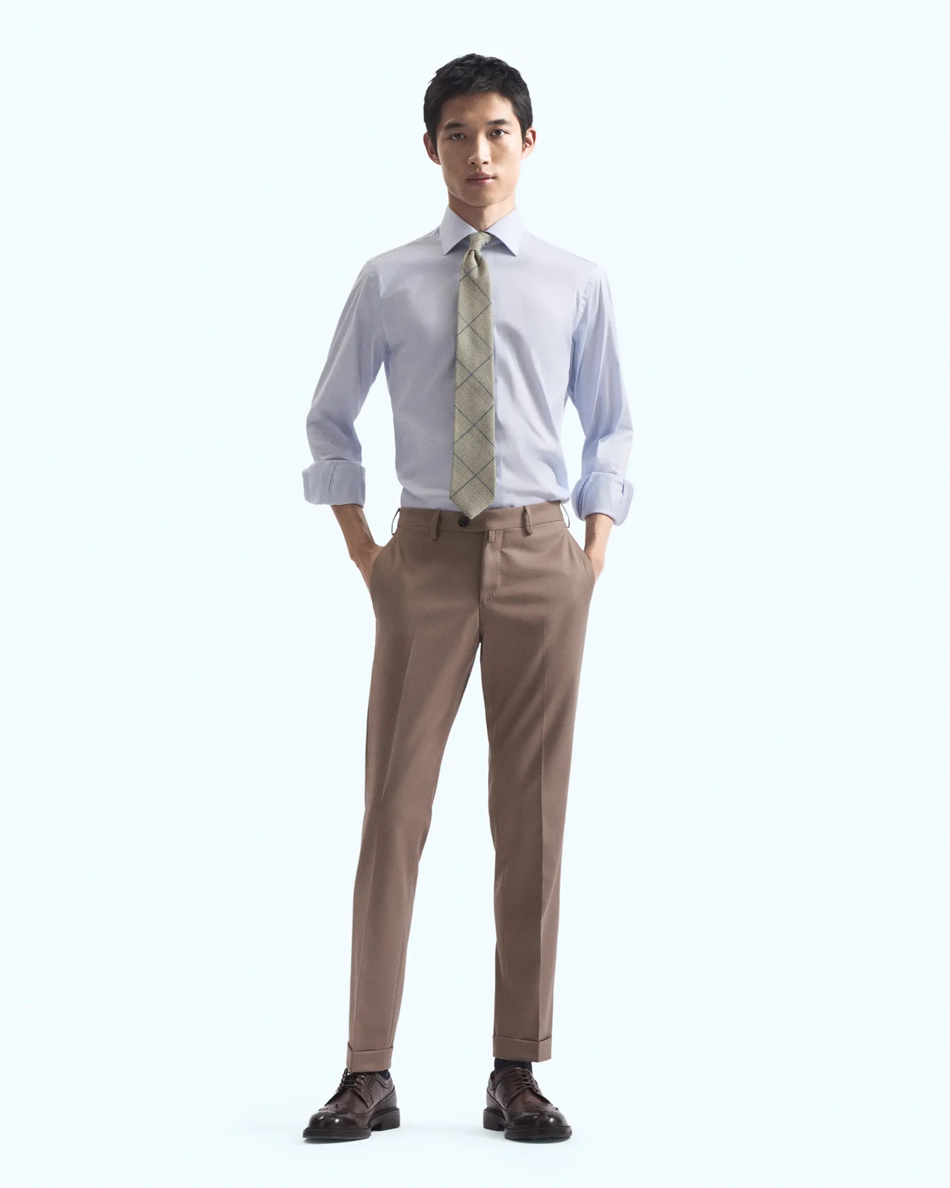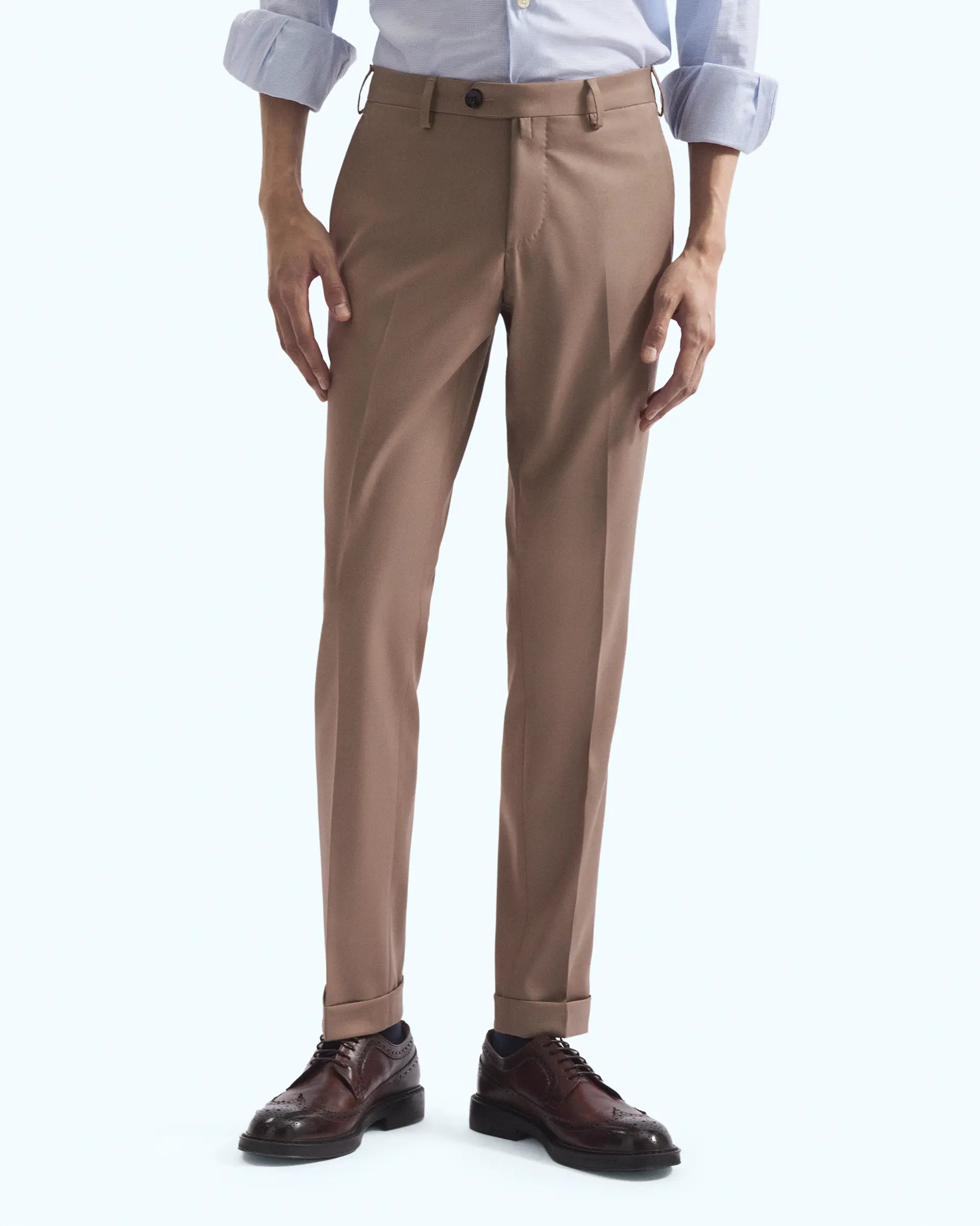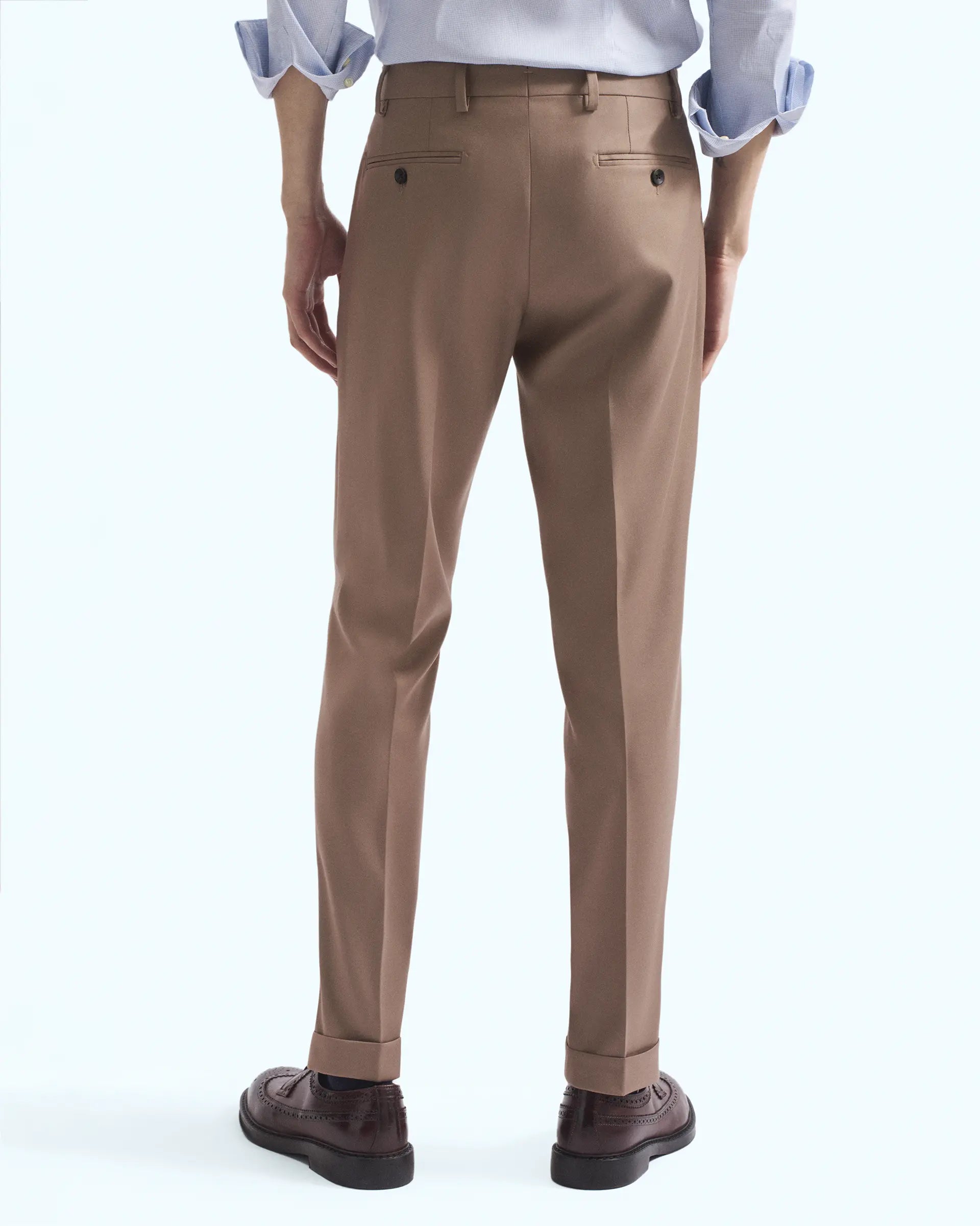 Classic trousers made of natural stretch wool. The blend of yarns used makes the fabric light and resistant, guaranteeing style and comfort. An essential item in the men's wardrobe, it stands out for its refined tailoring and finely crafted details.