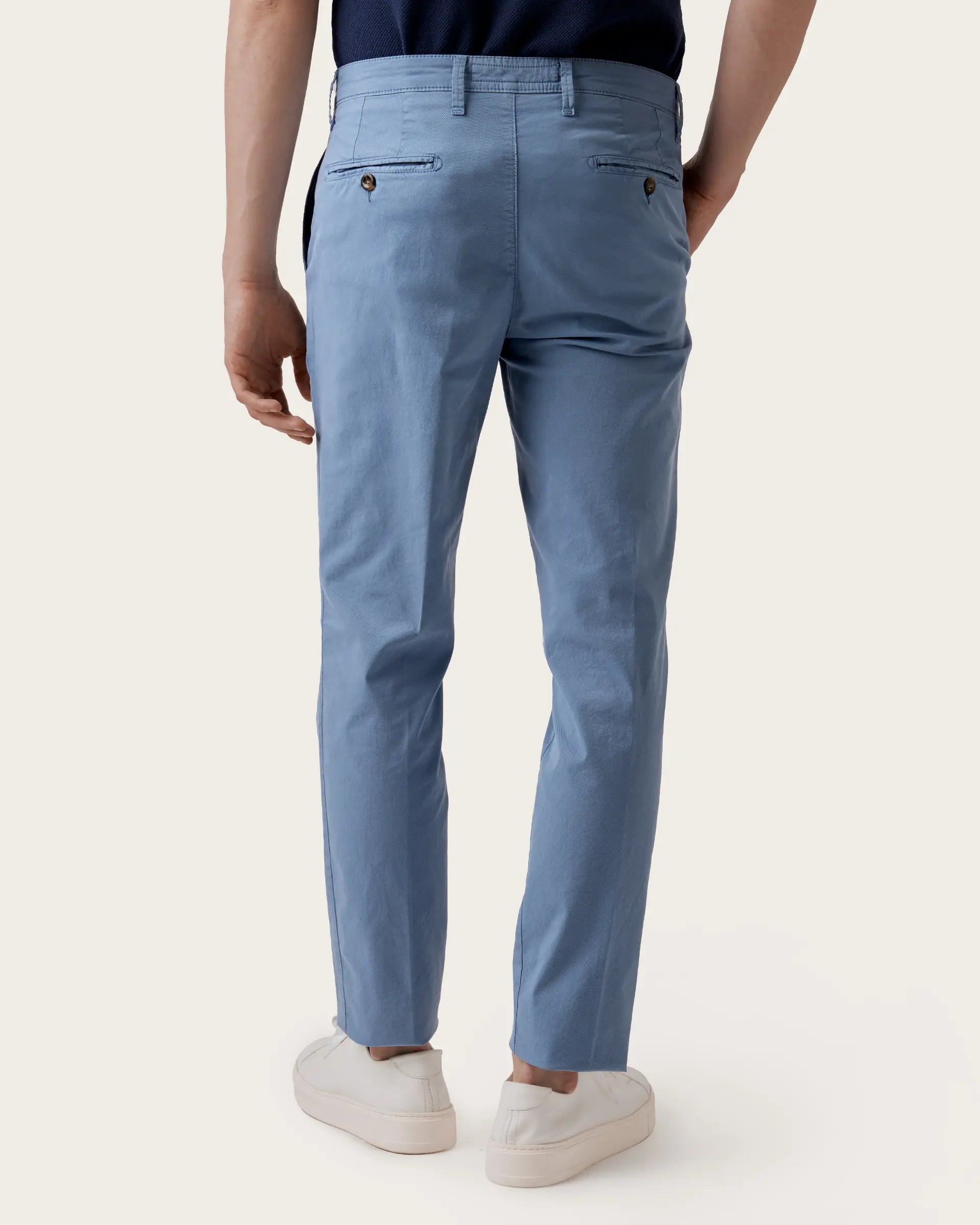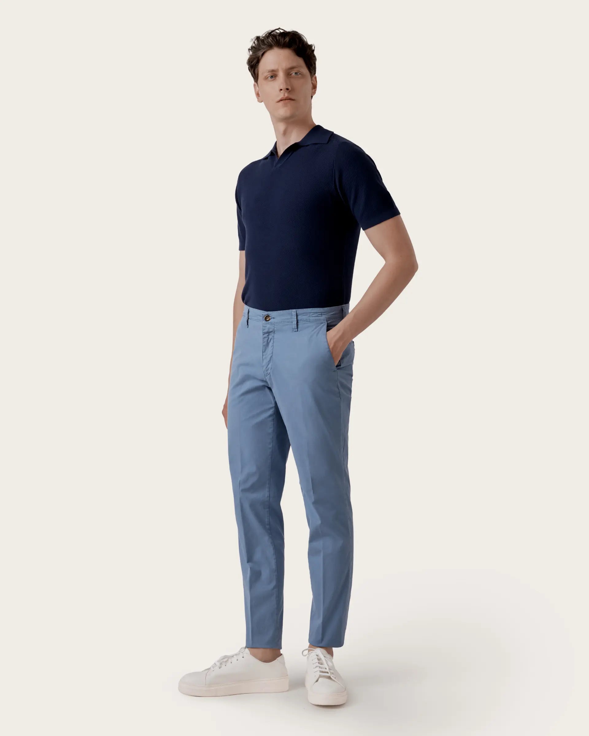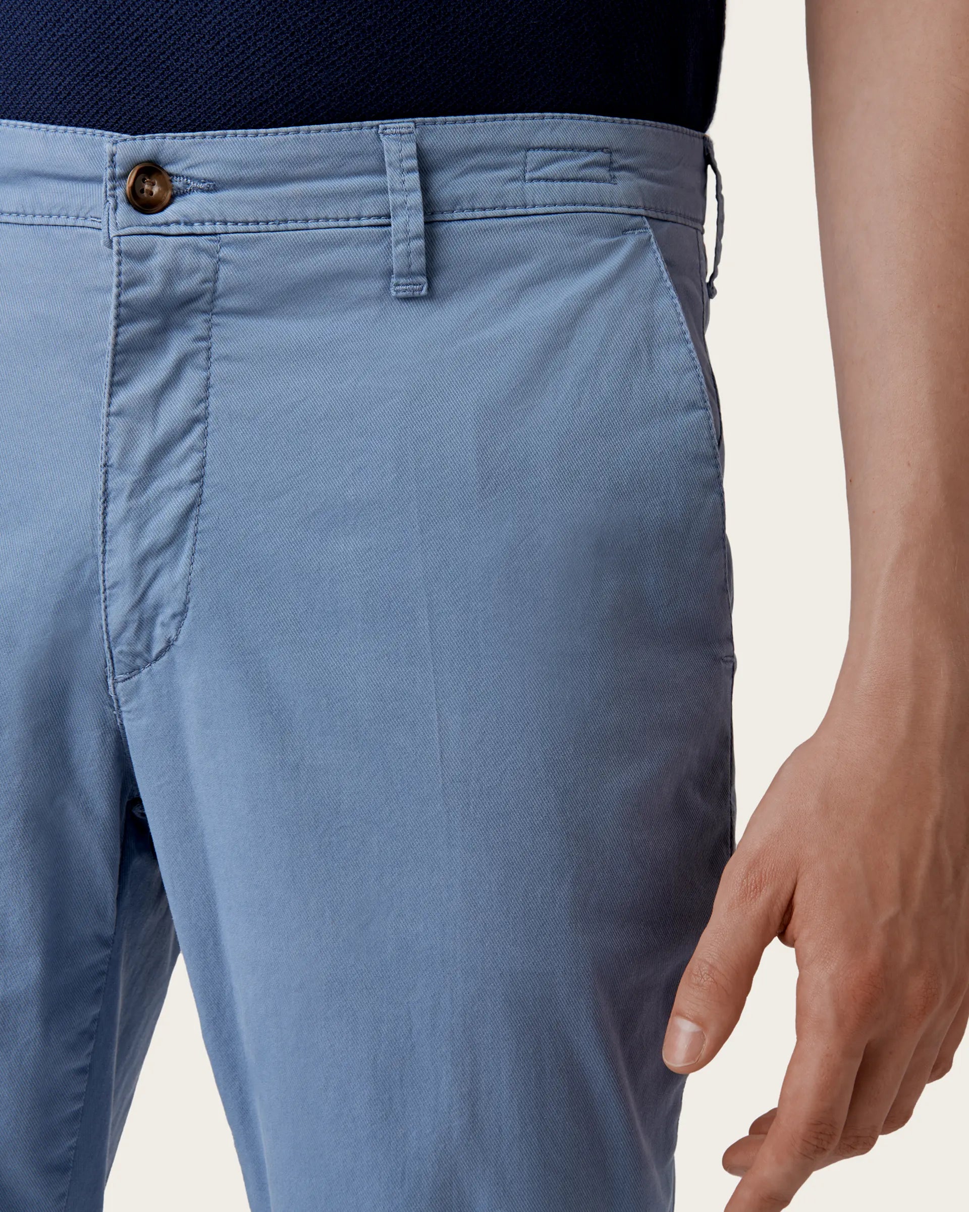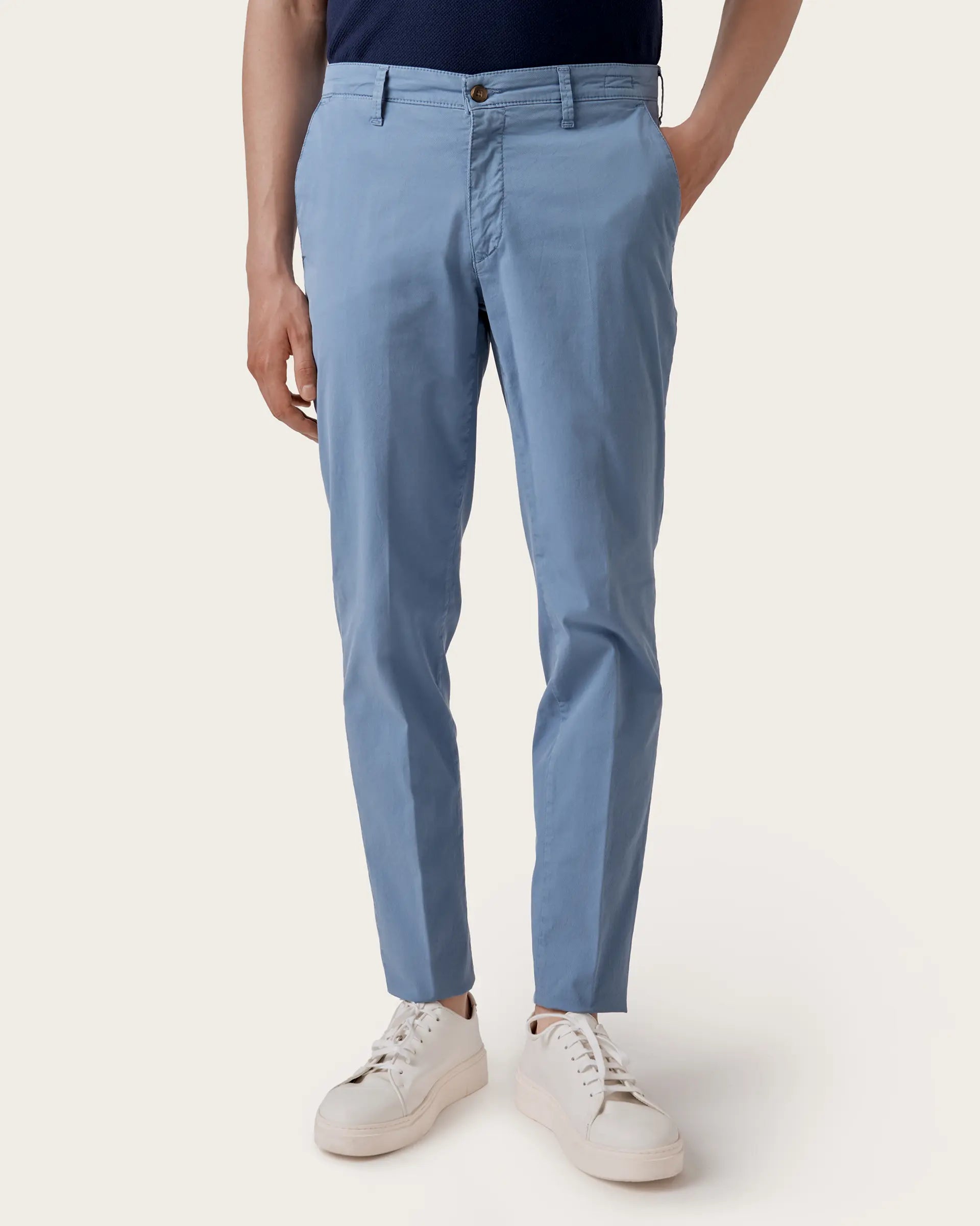 Iconic piece of the male wardrobe made of medium weight stretch cotton that combines a pleasant worked texture with resistance and elasticity. Essential and with a contemporary cut, it is presented with a “regular slim” fit for a dry but not tight fit that defines its refined appearance. The particular wash guarantees a soft feel and natural color shades.
