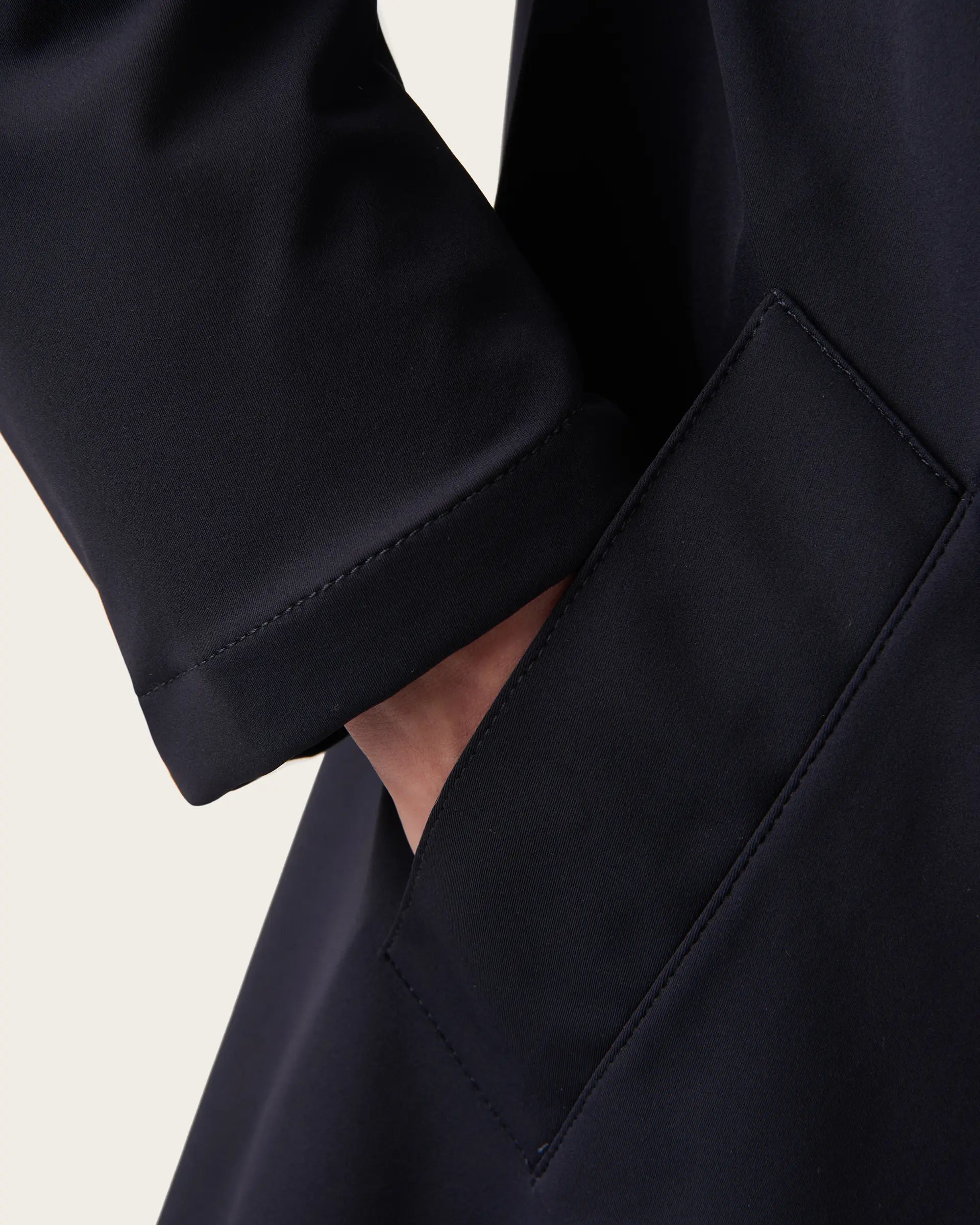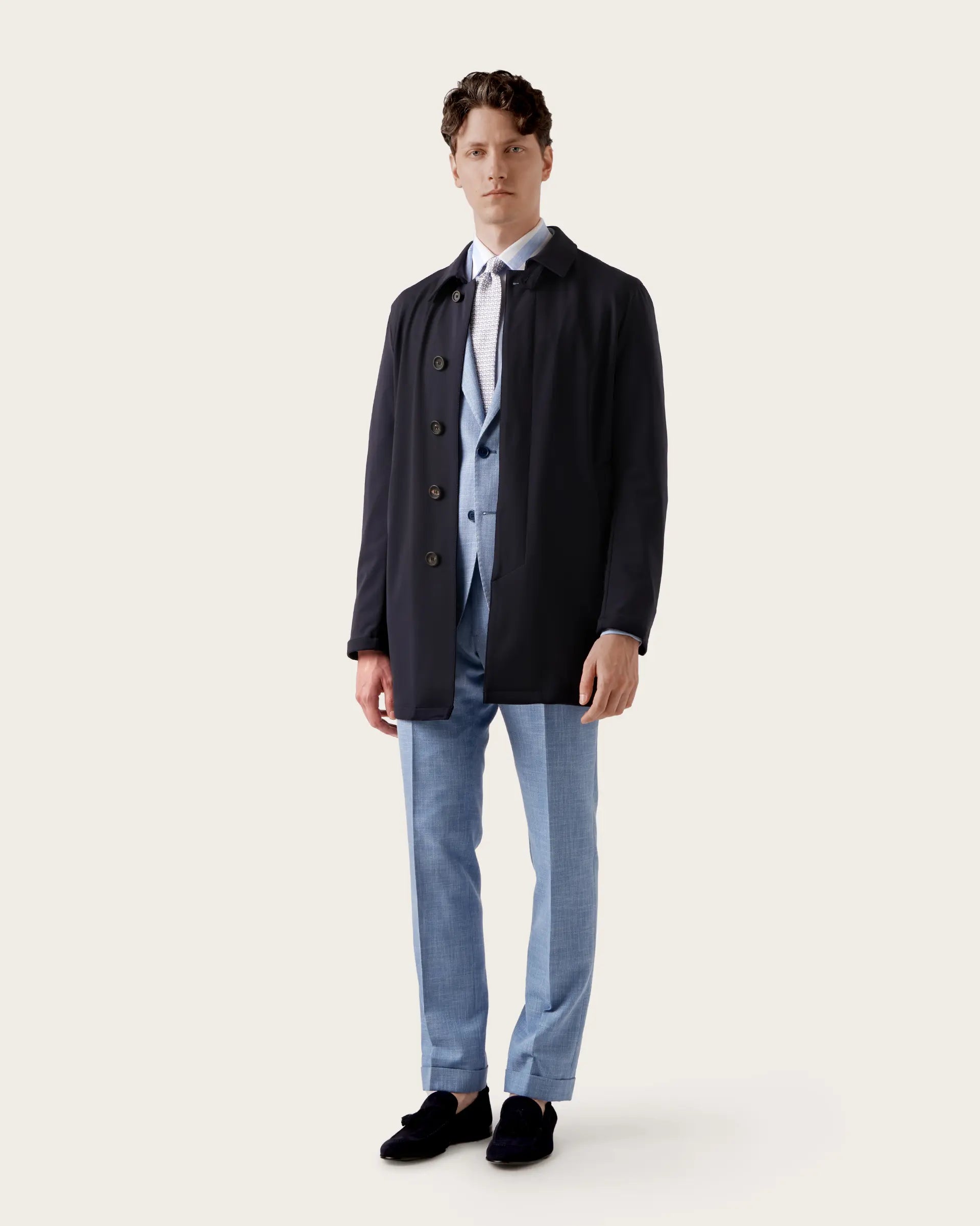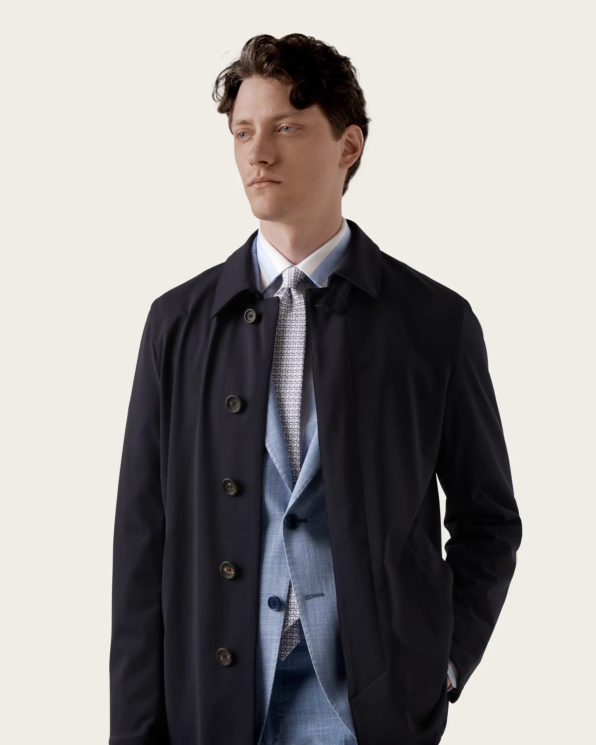 Raincoat characterized by a versatile and refined style, a perfect combination of elegance, style and comfort. It can be worn with a jacket or with a casual look to add a touch of class. Breathable fabric insulating from rain and wind, concealed button closure. A must have for the change of season.
