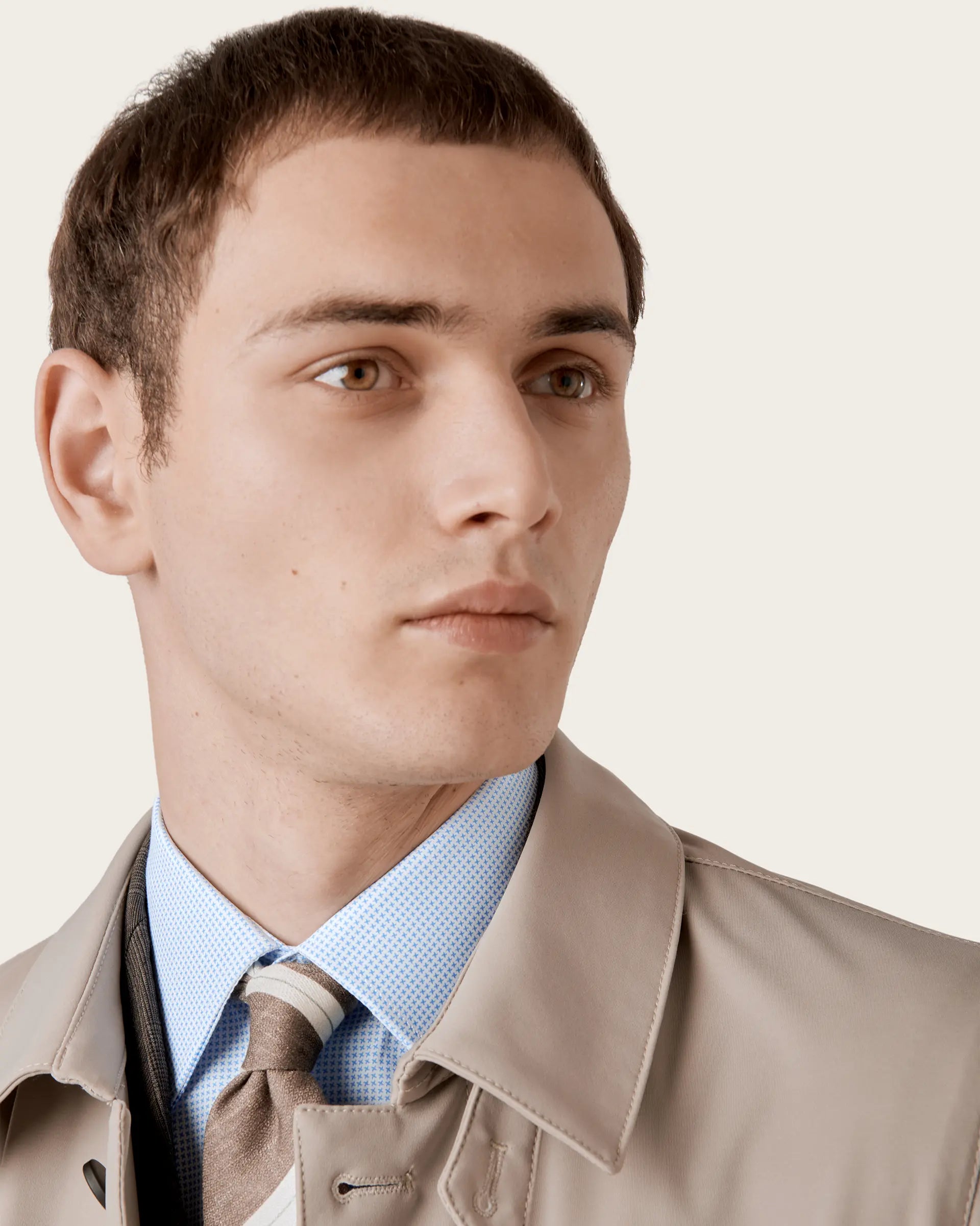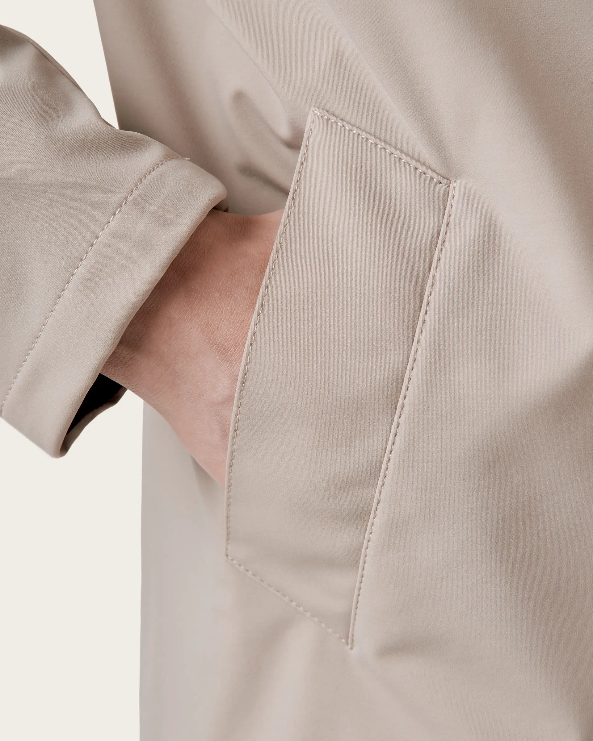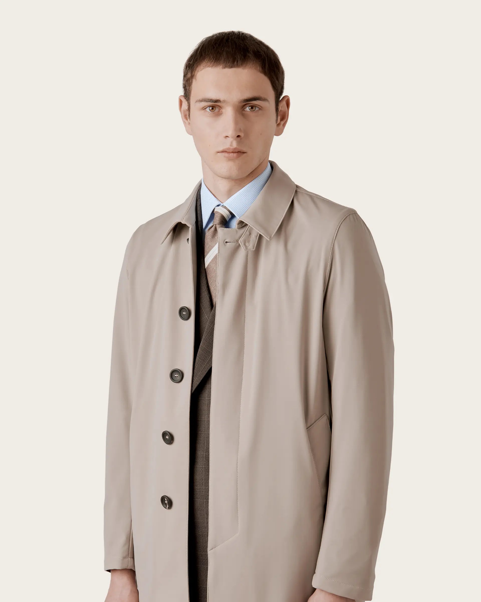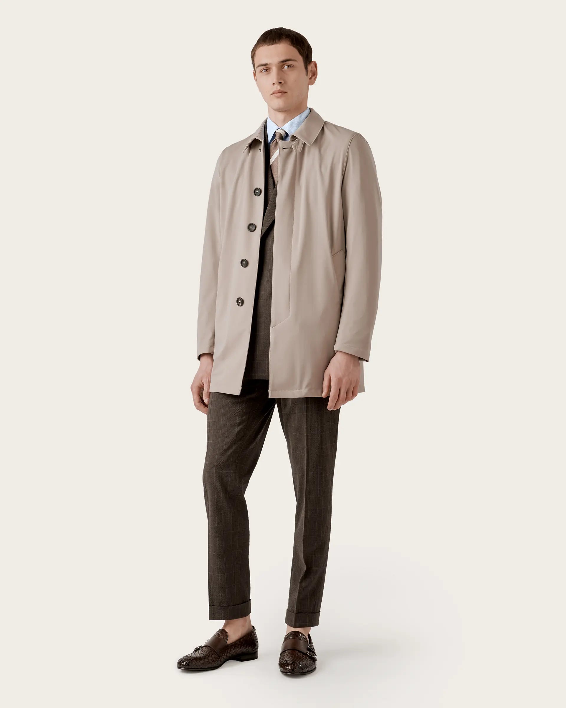 Raincoat characterized by a versatile and refined style, a perfect combination of elegance, style and comfort. It can be worn with a jacket or with a casual look to add a touch of class. Breathable fabric insulating from rain and wind, concealed button closure. A must have for the change of season.