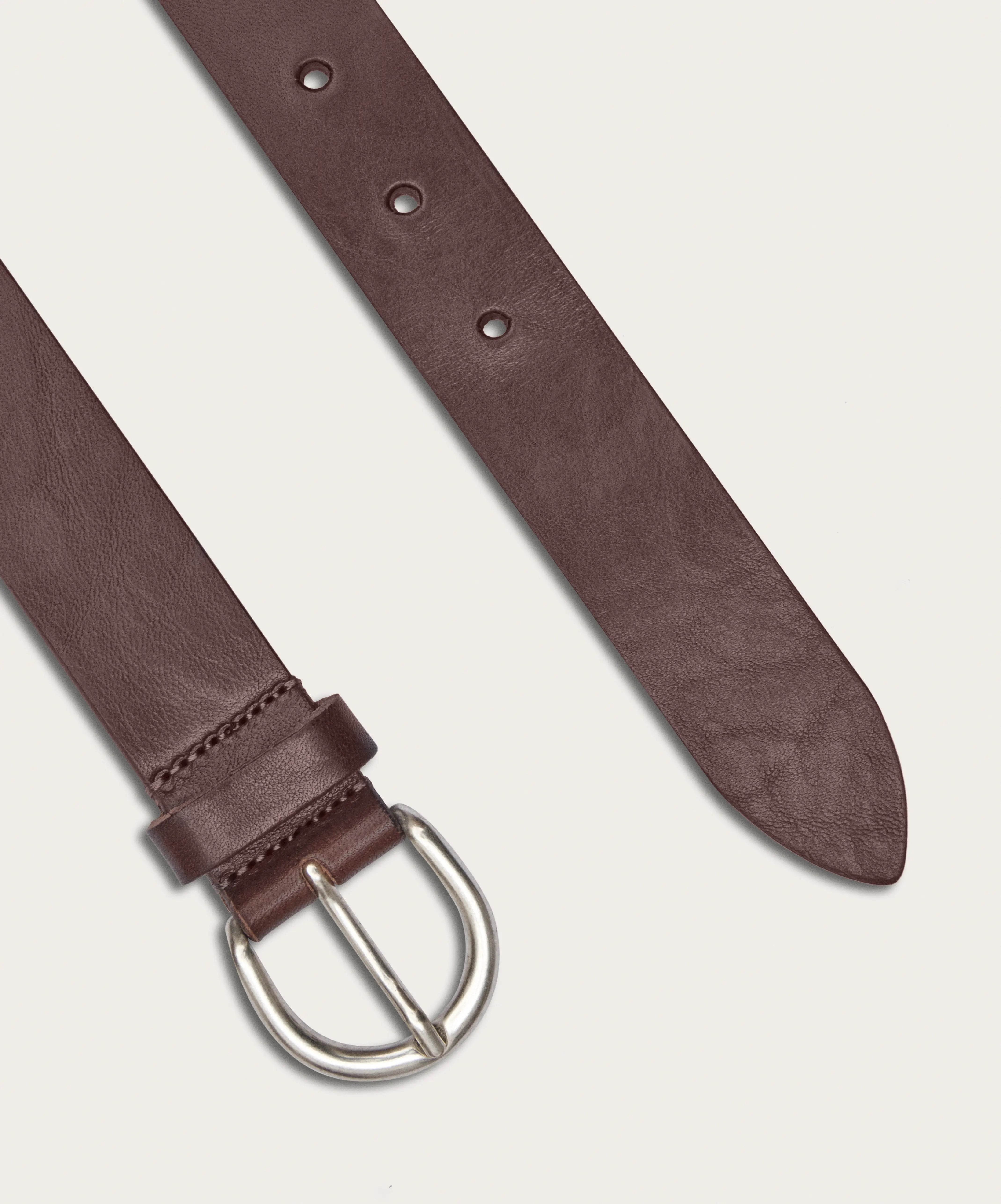 An alternative to the traditional leather belt, this item is made of cowhide with a natural aging process. Embellished with a satin nickel buckle, it is a versatile and casual accessory that defines a precise and characterful style.