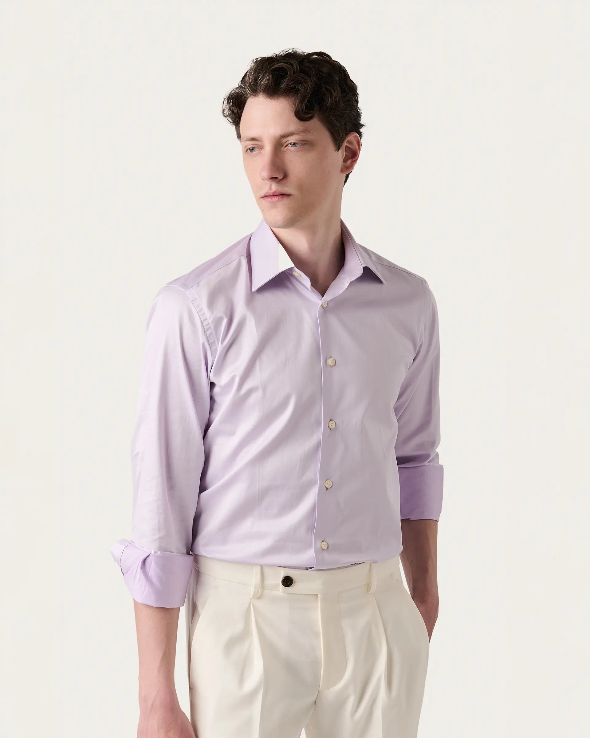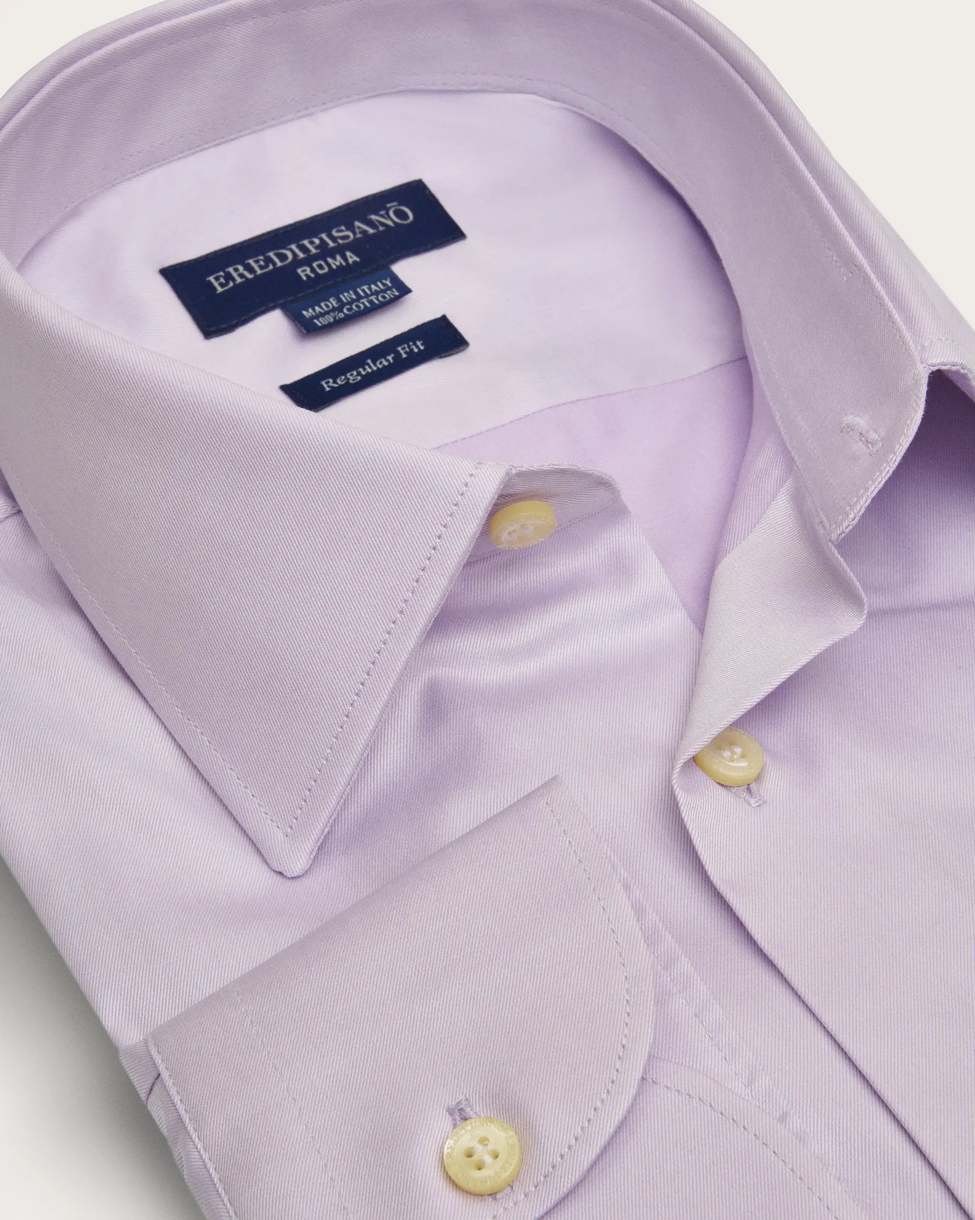 Tailored shirt made of pure double twisted cotton with a renewed Italian collar, a great classic presented in an updated version suitable for more formal occasions but also for everyday life. It is proposed in the comfortable regular fit in a solid and elegant color to give a discreet style to the most formal looks.