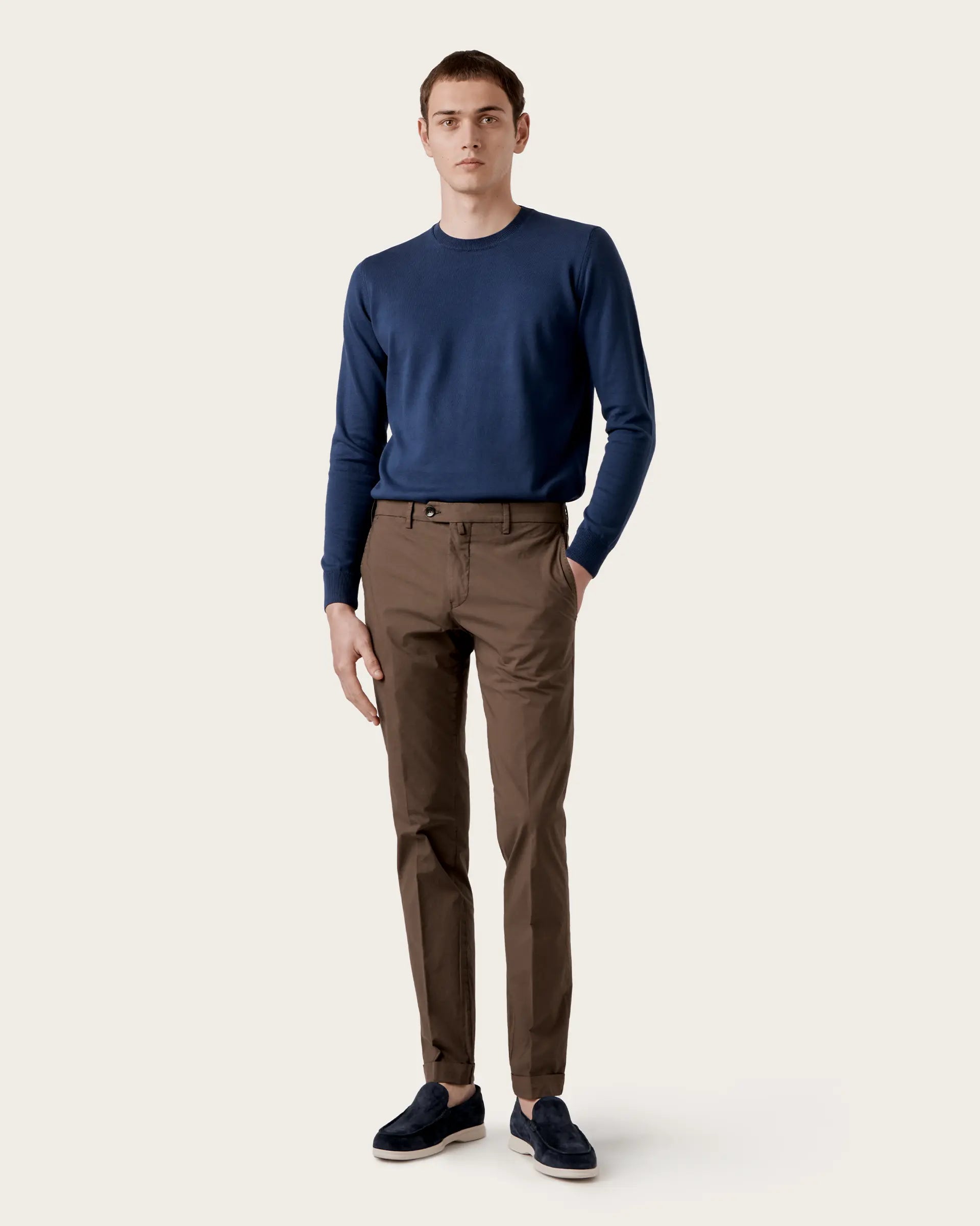 Chino trousers in stretch cotton herringbone, garment-dyed, featuring a texture with a delicate tone-on-tone design. A garment made of stretch cotton, to guarantee that elegance and comfortable fit required by today's men's wardrobe. The garment dyeing adds a pleasant chromatic effect to a smart casual garment, enhancing your outfits with sobriety and elegance.