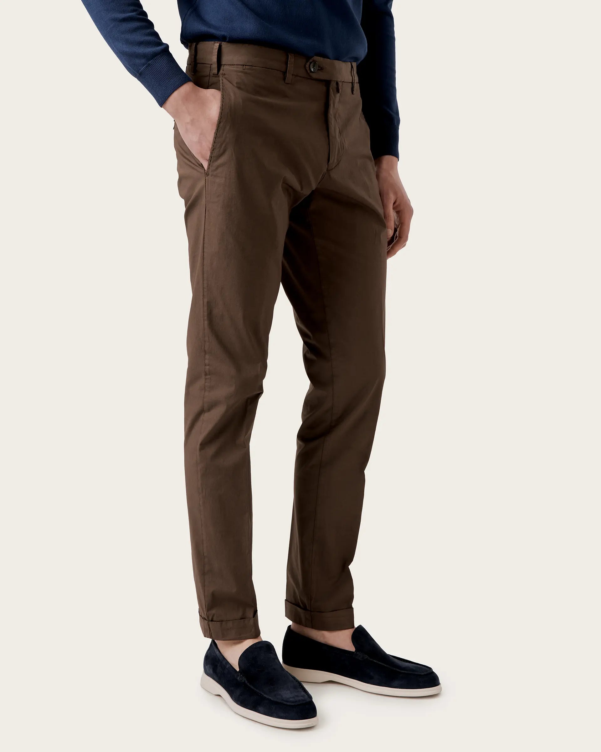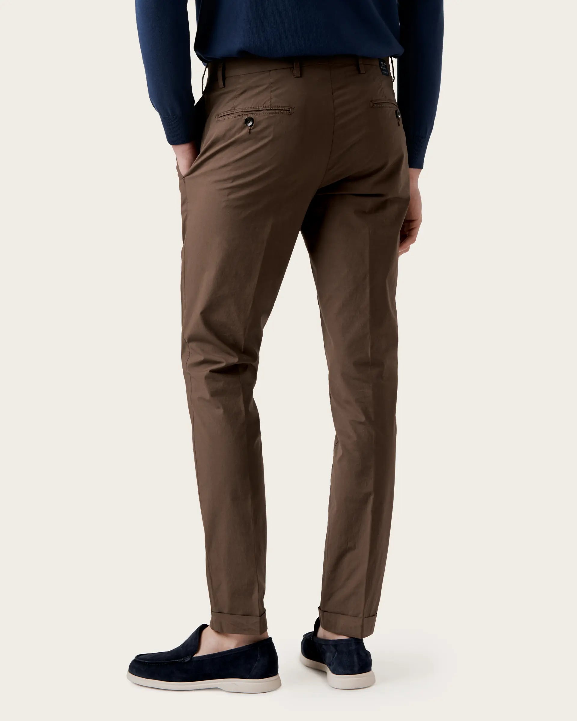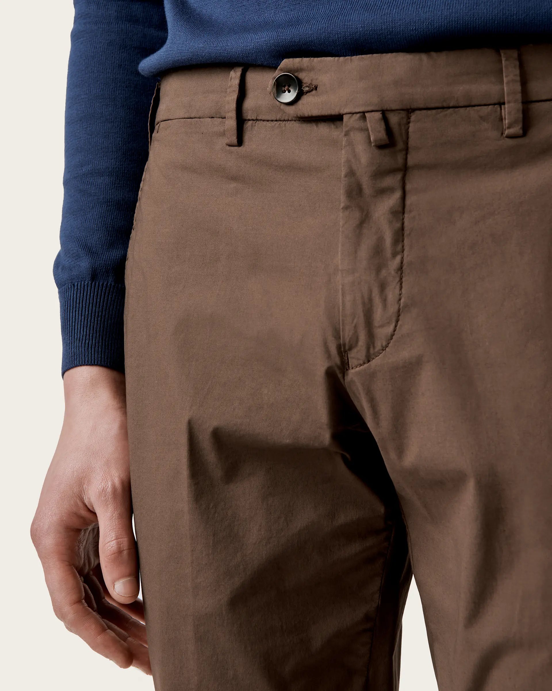 Brown Popeline Cotton Stretch Garment Dyed pants