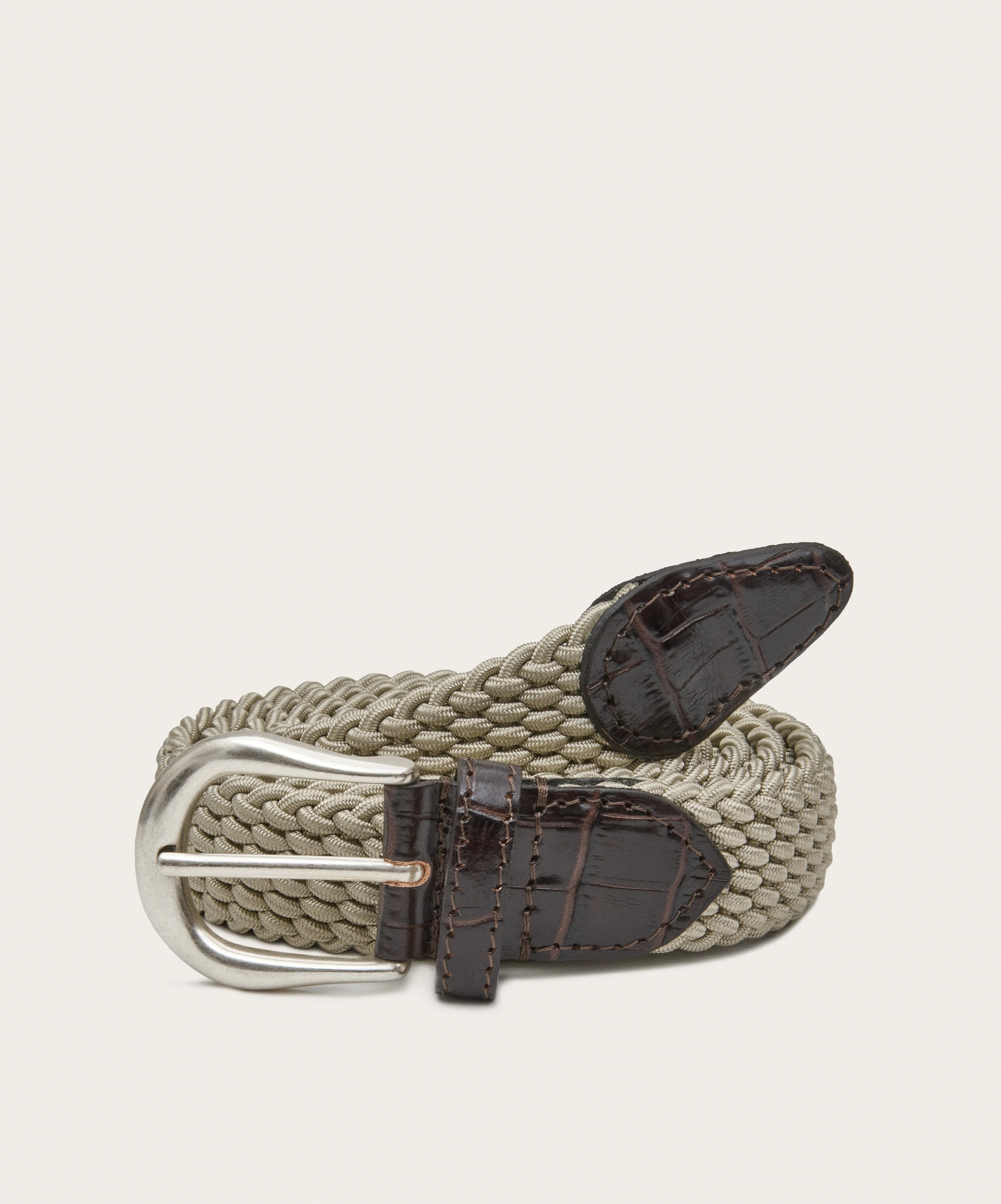 Beige braided leather with tip Belt