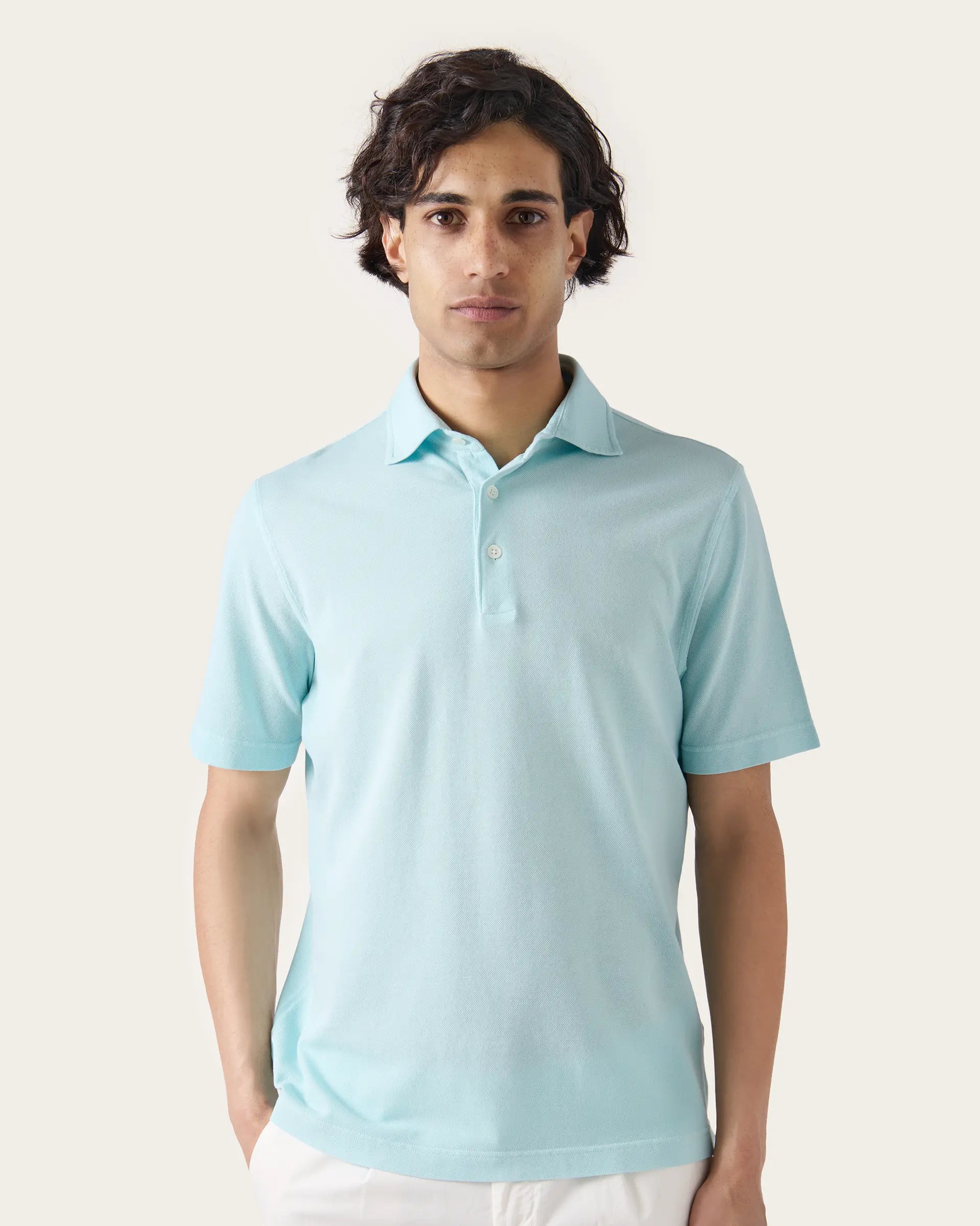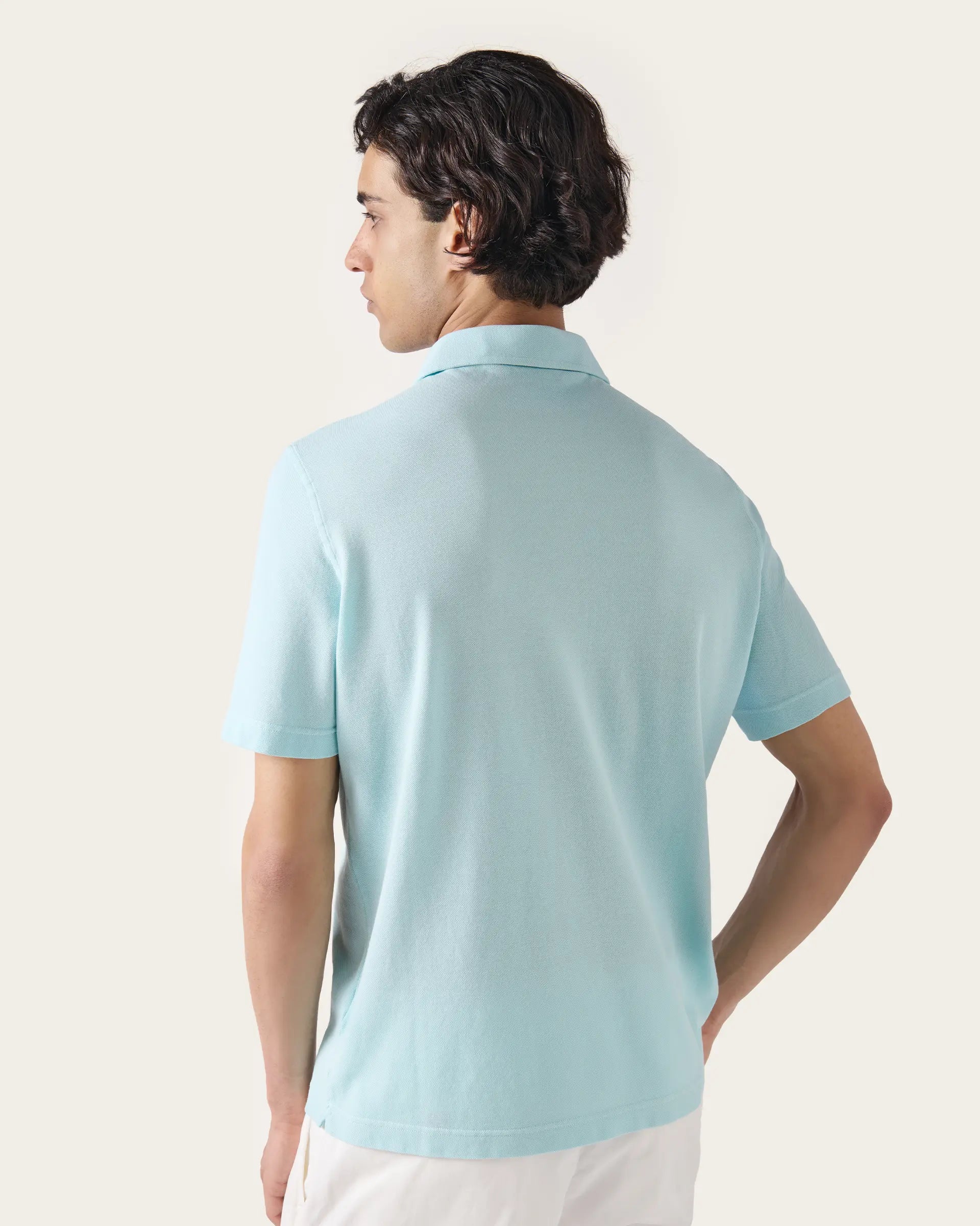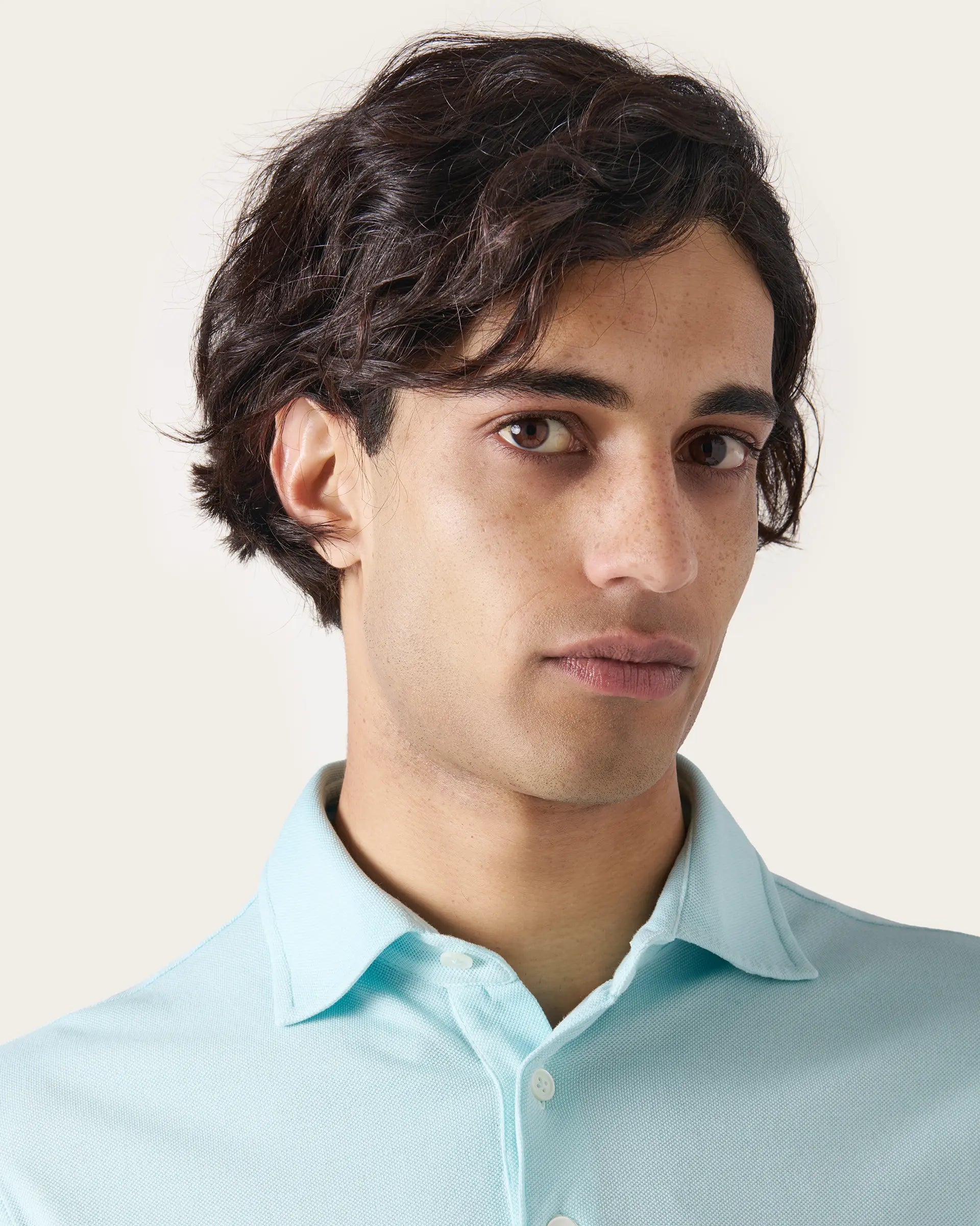 An icon of ease, it is made of pure, light and soft pique cotton and is characterised by a button fastening and a shirt-style collar that expresses refinement and elegance, while the garment dyeing guarantees unique and intense shades of colour. Perfect for creating simple looks and, at the same time, versatile and suitable for enhancing the casual looks of the summer with an impeccable style.