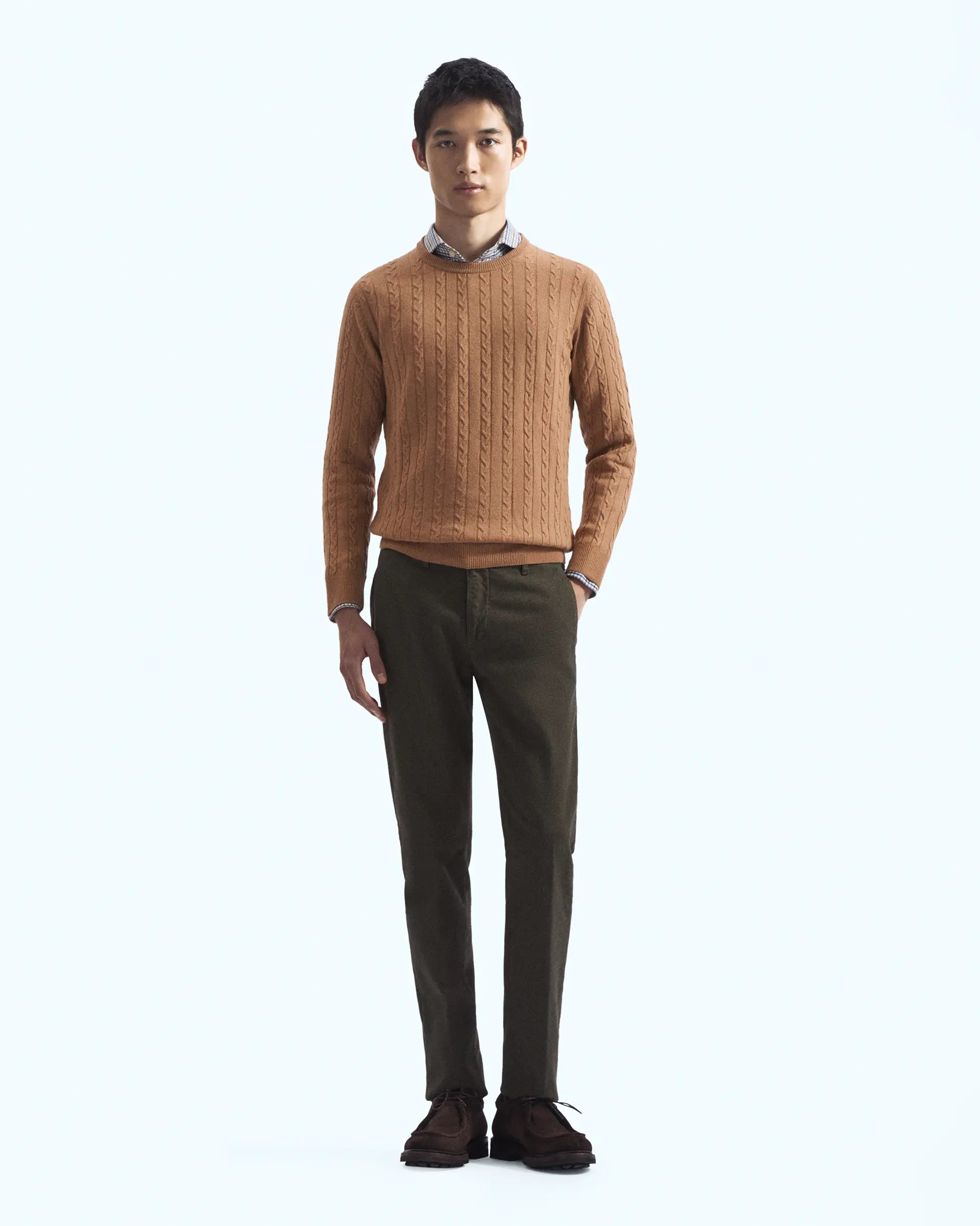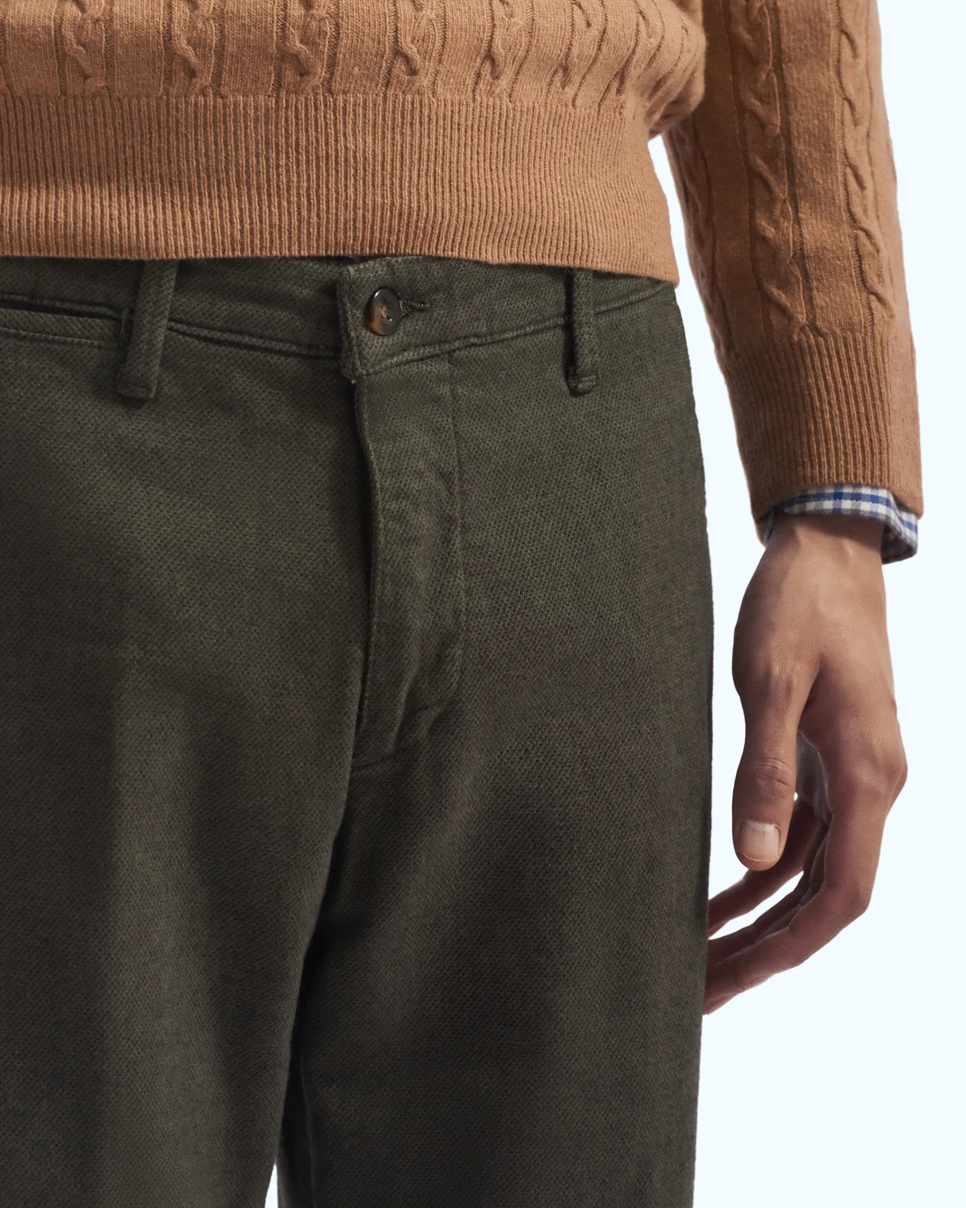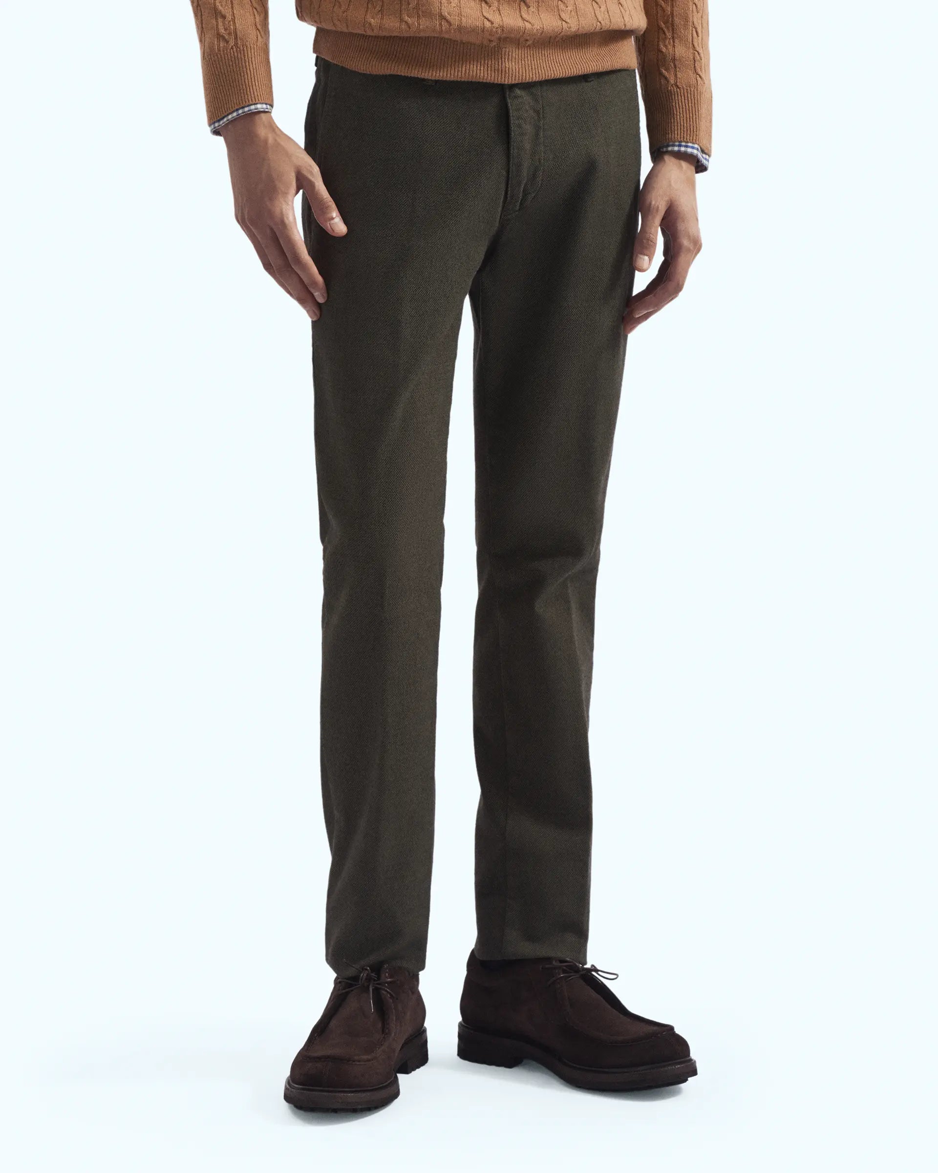 Chinos trousers made of high-weight stretch cotton and combined with a wool-effect texture. The weave and soft feel of the fabric amplify comfort and ensure warmth even on the coldest days while the regular fit guarantees a refined appearance making it perfect for all occasions.