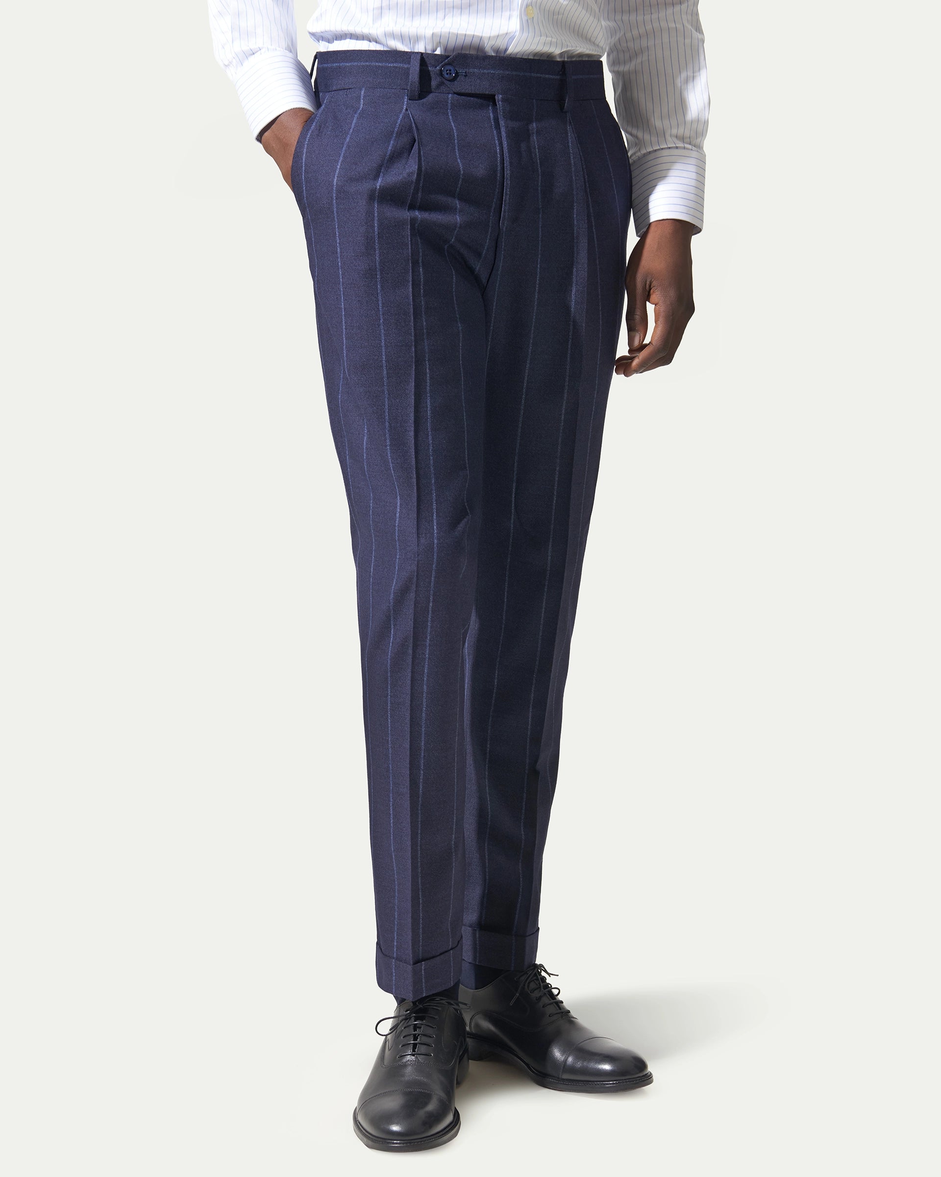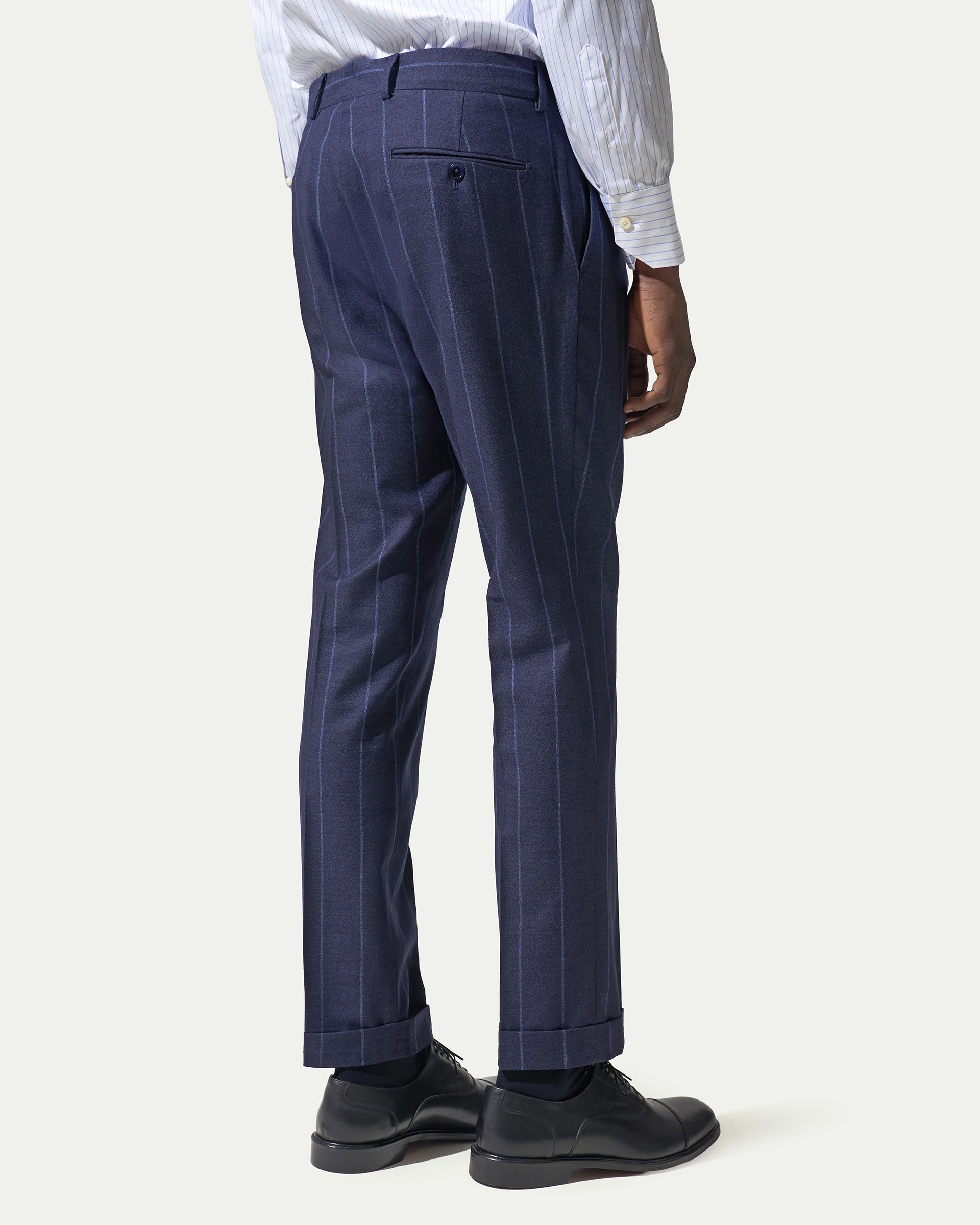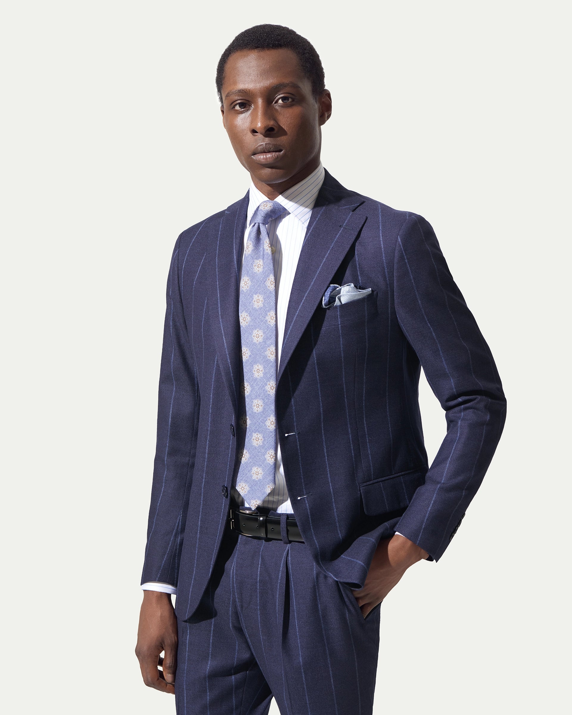 Blue pinstriped suit in wool and cotton fabric by Vitale Barberis & Canonico