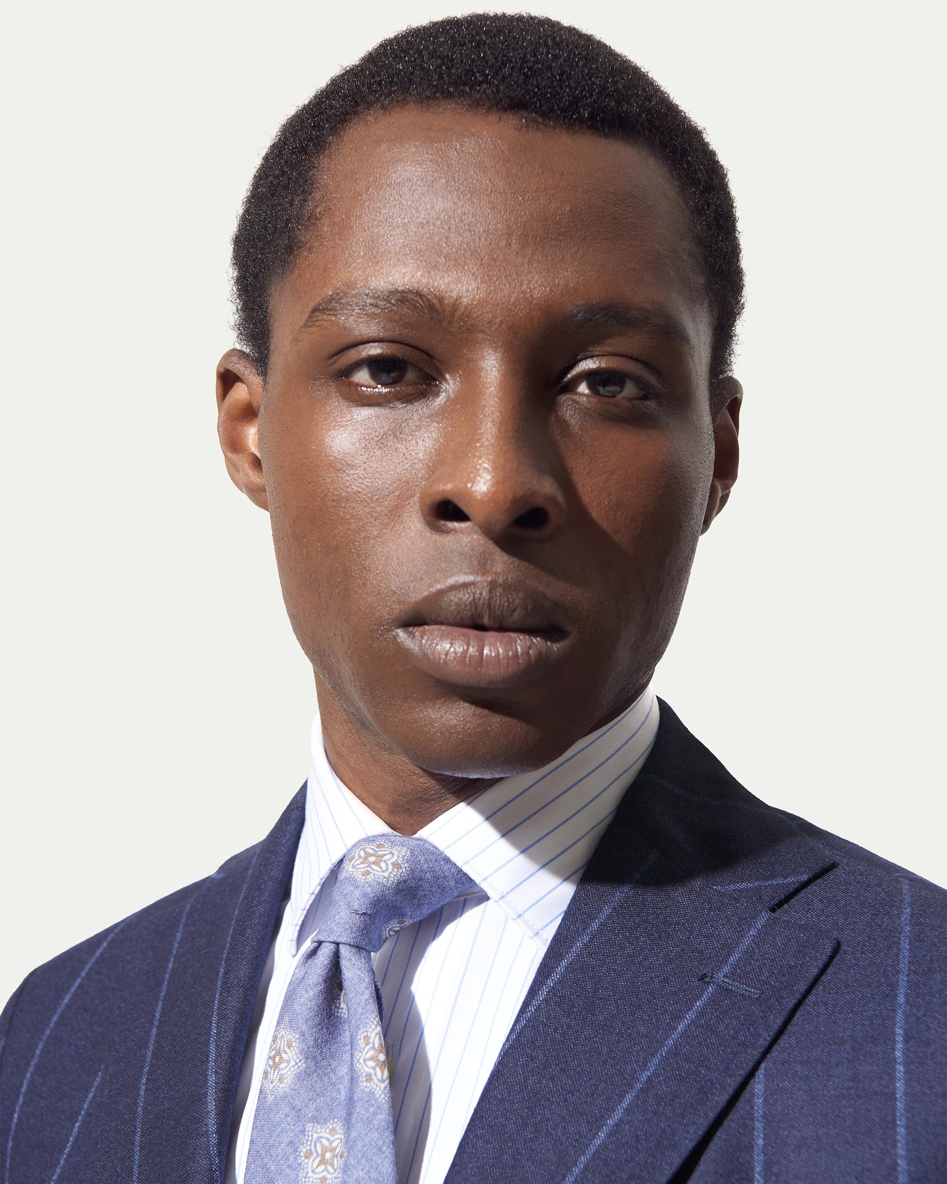 Tailored suit crafted from a high-performance, stretchy fabric that adapts to the body's movements. The lined, two-button jacket is paired with a refined, modern single-pleated waistcoat. The contrasting pinstripe adds a touch of vivacity to a timeless classic.