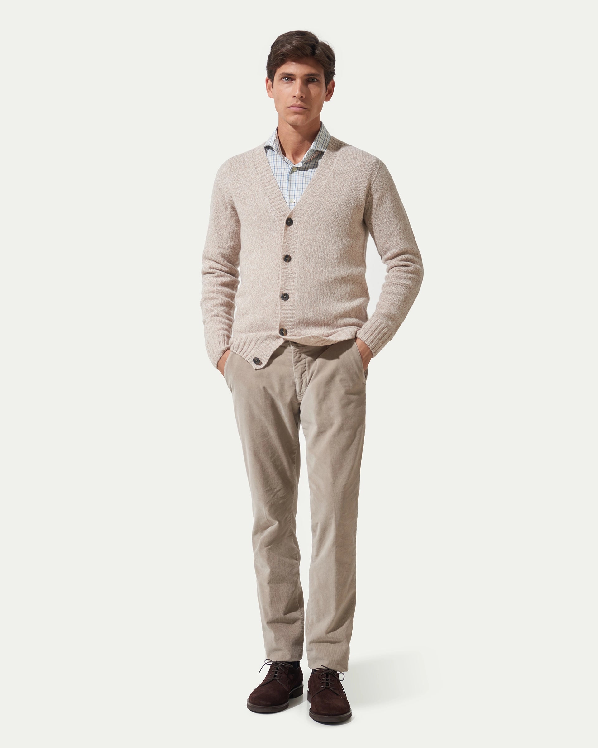 Beige Cradigan Merino wool fineness 5 sweater – Eredipisanò International