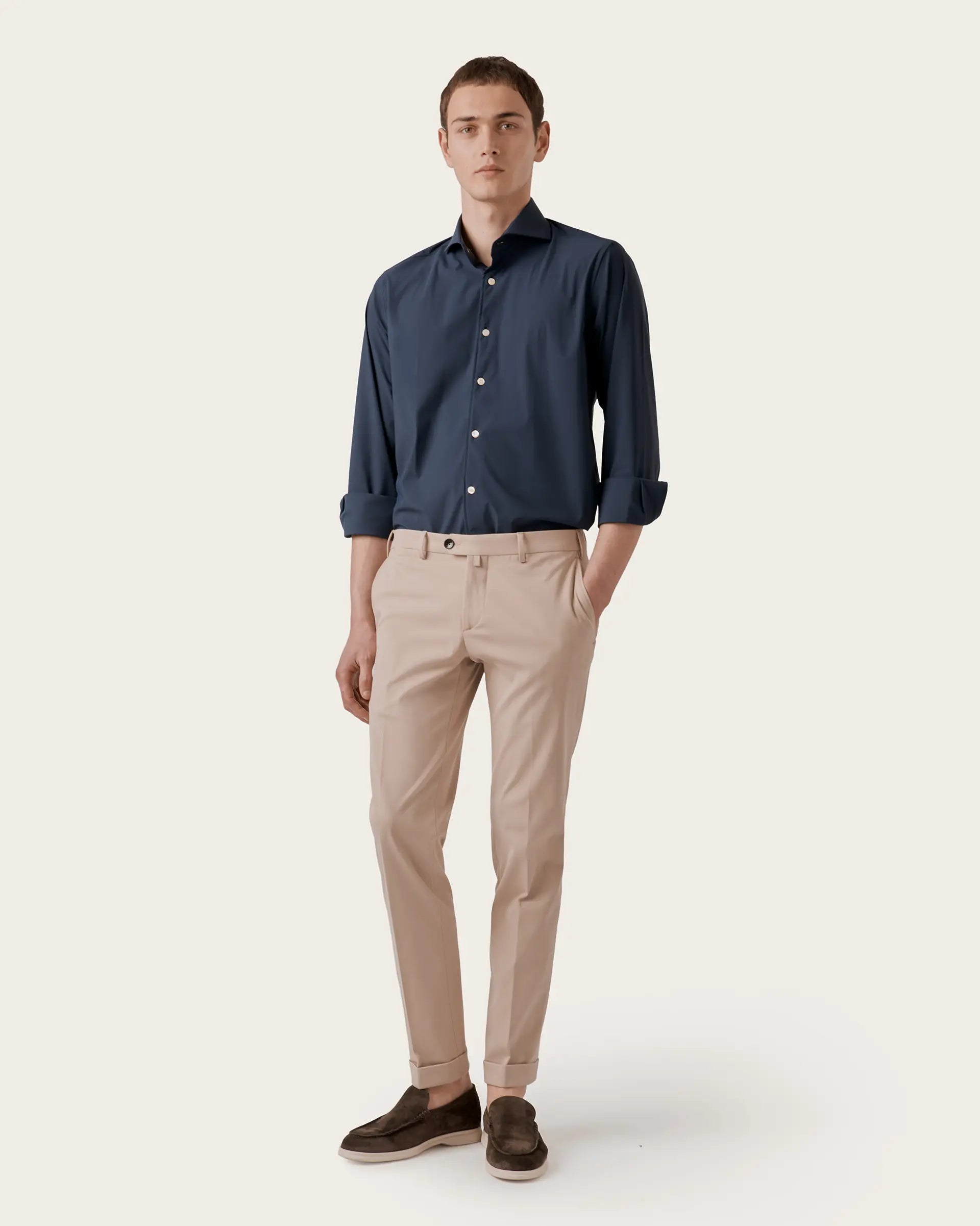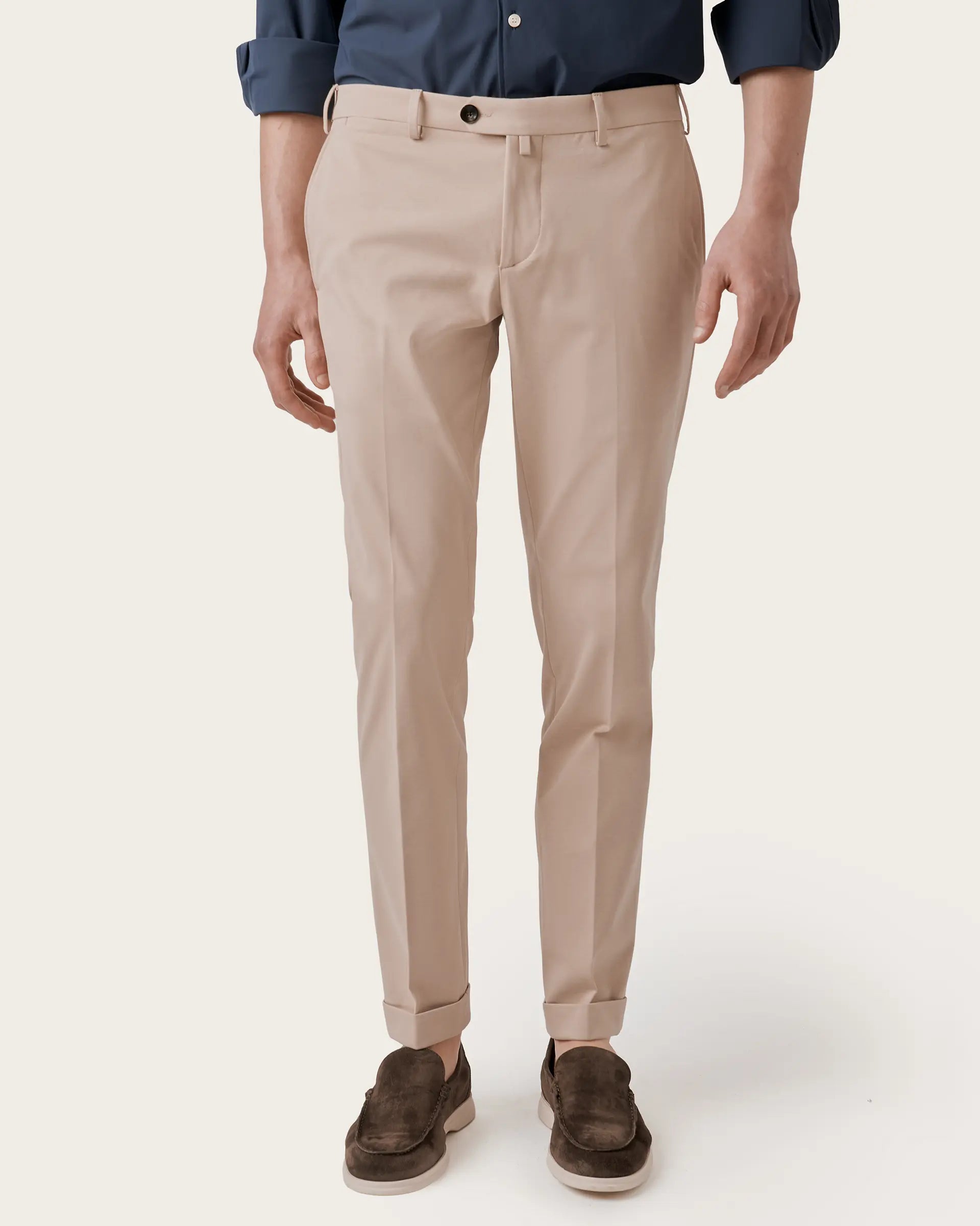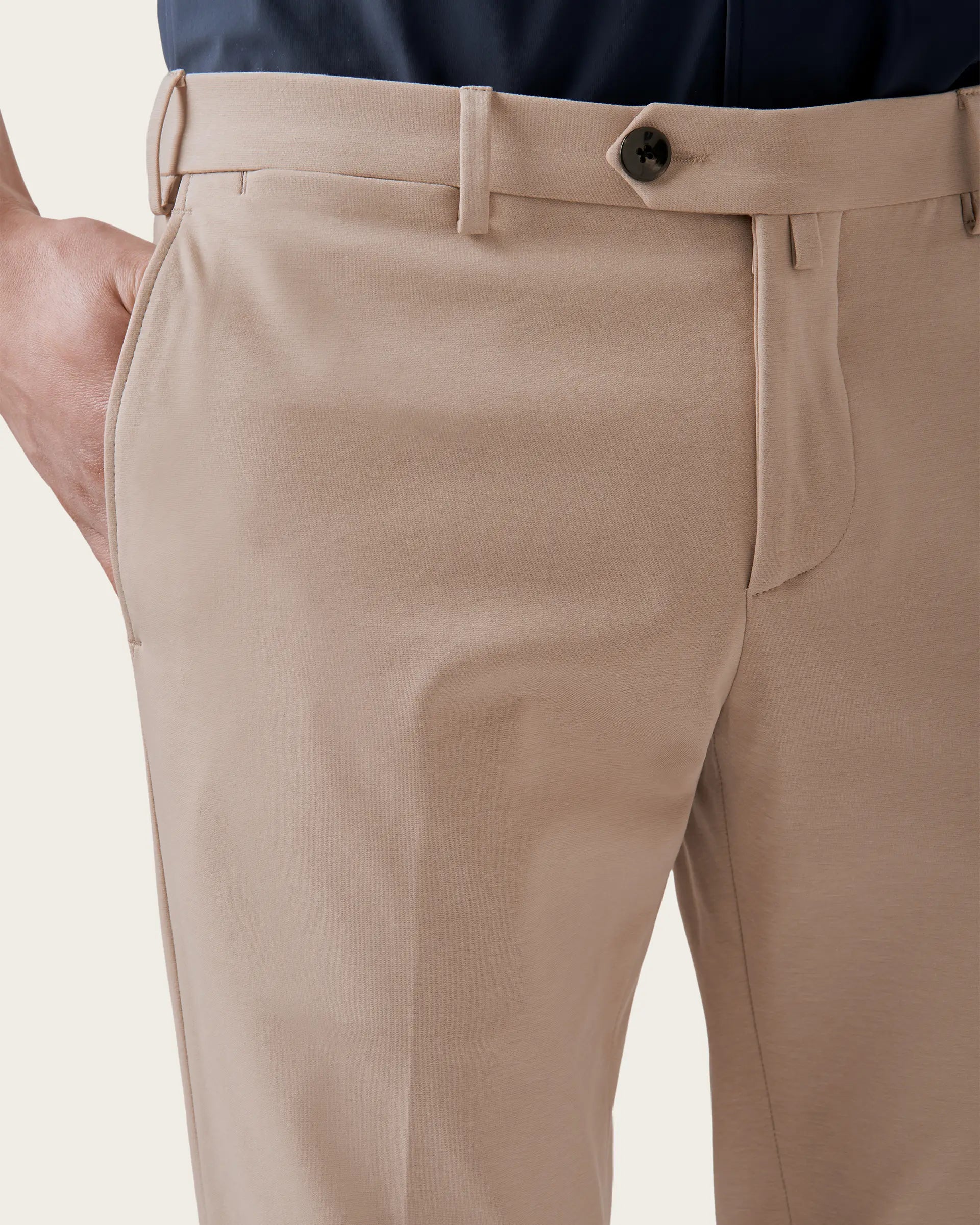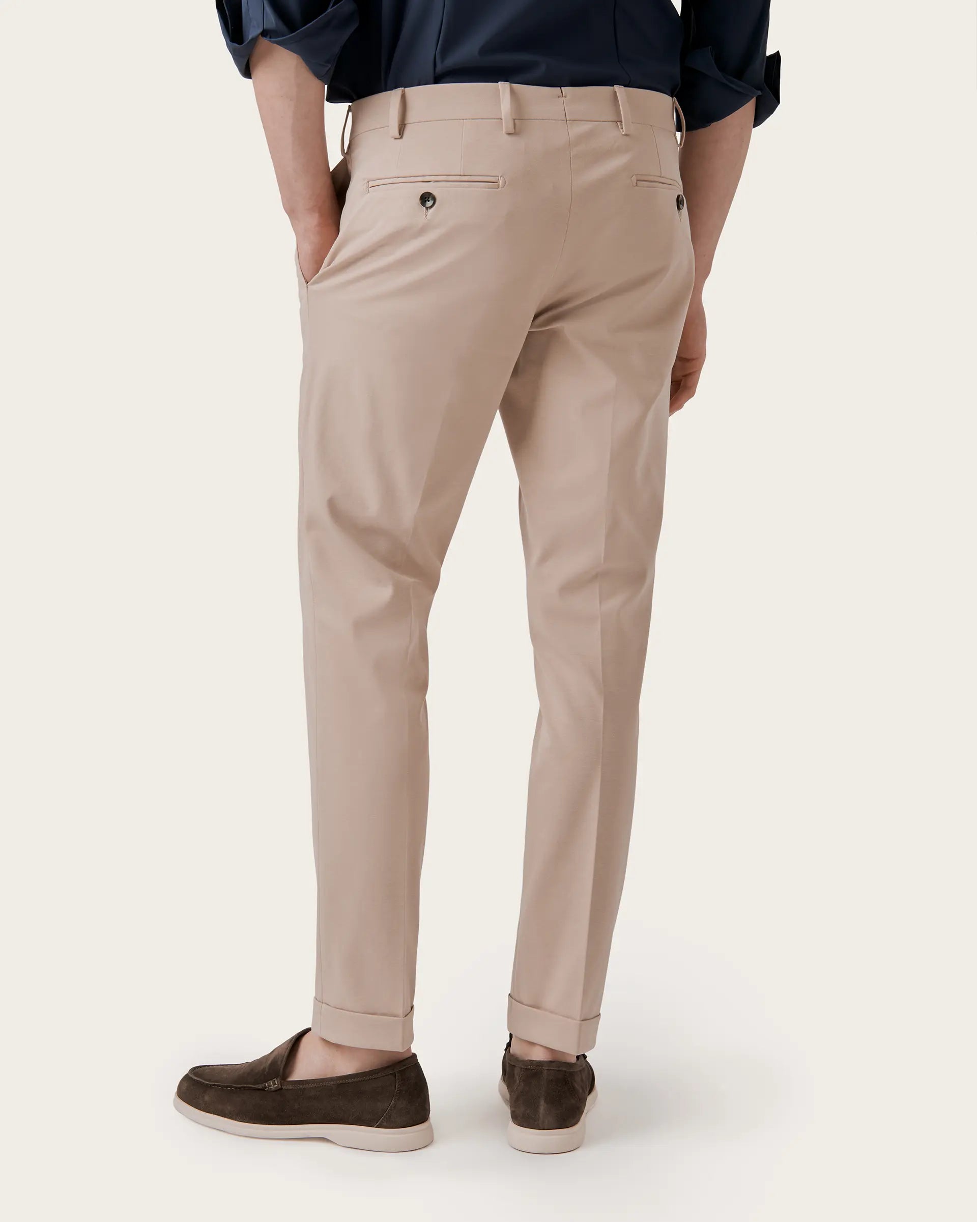The casual feel of jersey is combined with the classic style of trousers for a sophisticated contrast. The result is an elegant and sporty garment, impeccable and high-performance, characterised by elasticity, comfort and breathability. Perfect fit, top-quality materials and pleasant to the touch, suitable for every occasion in everyday life.
